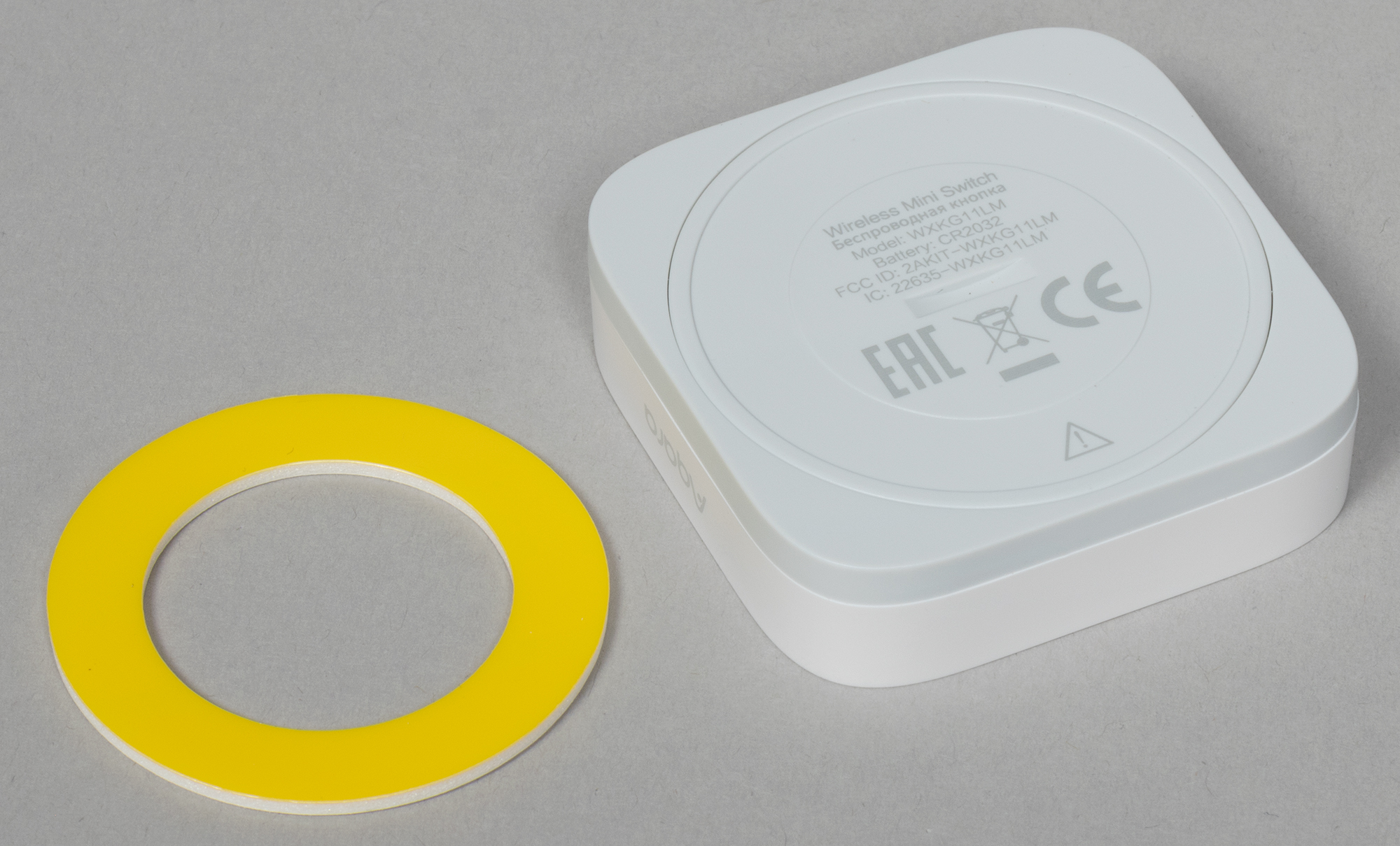 Беспроводная кнопка тоже довольно компактна, ее размер — 12×45×45 мм. Непосредственно кнопка находится на верхней панели, нажимается с приятным усилием и ощутимым кликом.