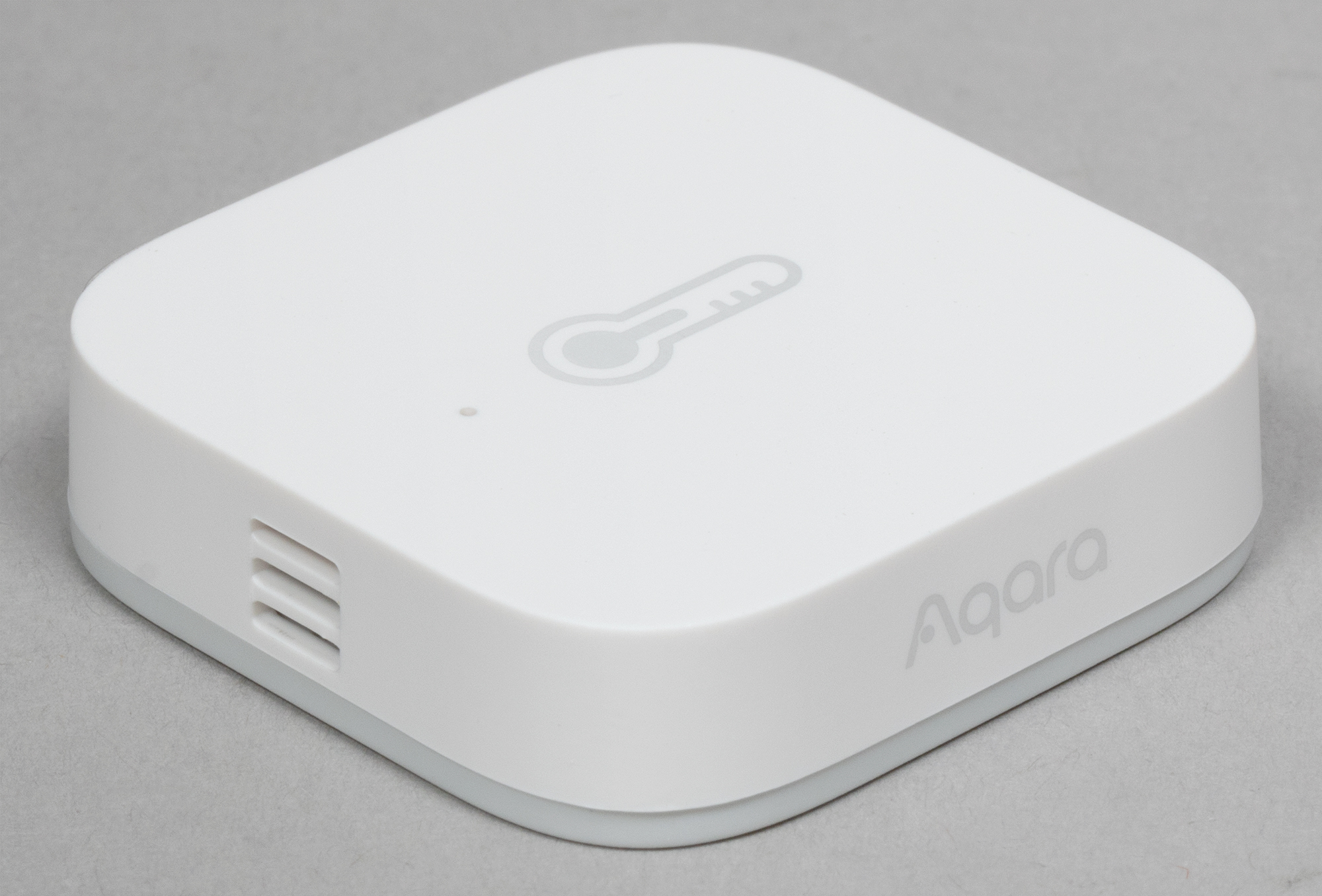 Датчик климата совсем миниатюрный — 36×36×9 мм. На одной из боковой поверхностей корпуса есть прорези, за которыми скрываются непосредственно датчики.
