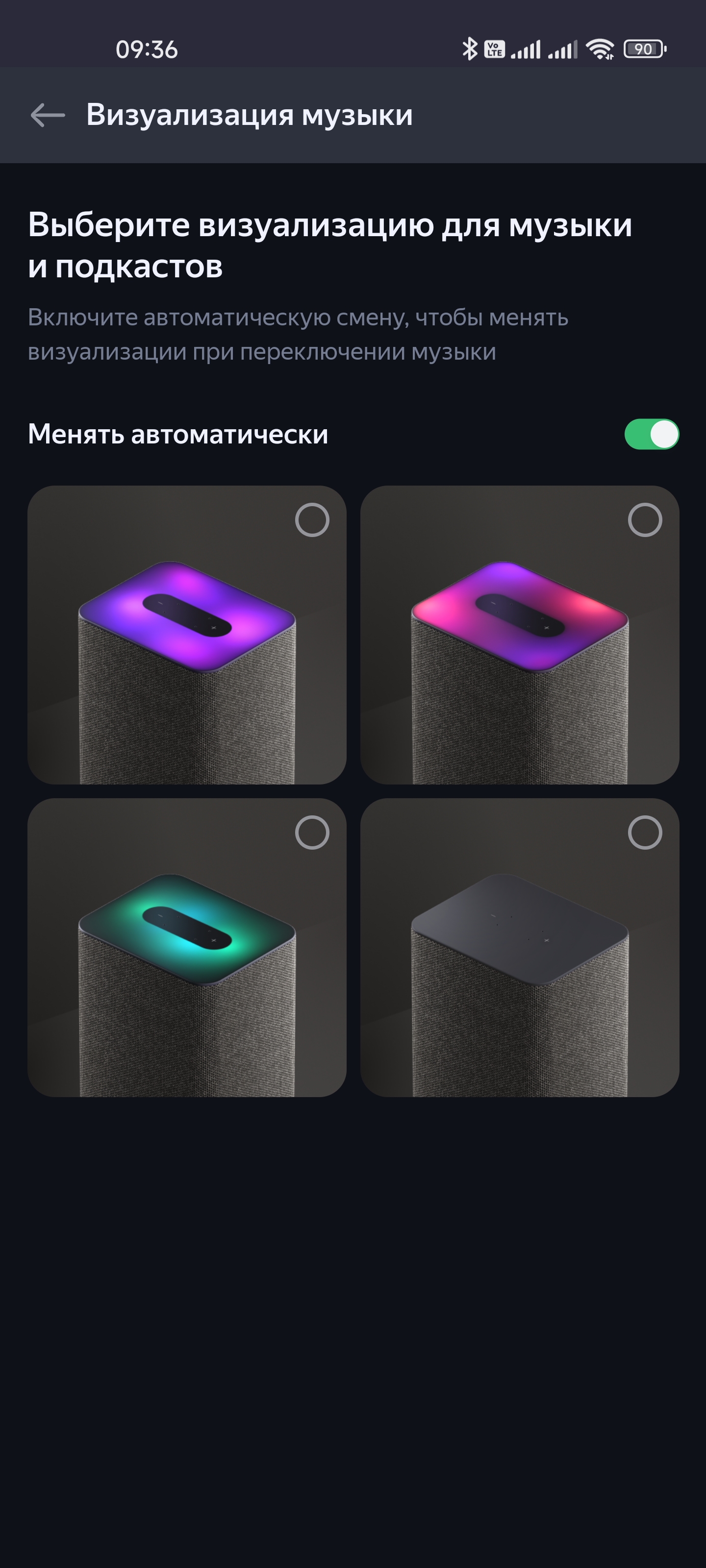 Работа верхней панели настраивается: можно вручную выставить яркость, выбрать тип визуализации. А еще на «Яндекс Станцию 2», как и на ряд прошлых колонок, можно позвонить. На первый взгляд, не самая полезная функция. Но пару вероятных сценариев использования для нее придумать легко: например, можно позвать всех обедать, не покидая кухню и не повышая голос…