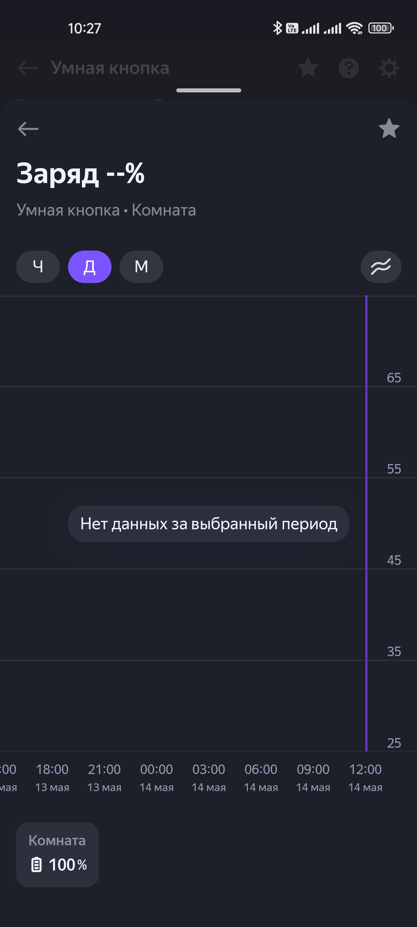 На странице подключенного датчика климата отображаются уровень его заряда, температура в комнате, а также влажность и давление. Все параметры сохраняются, их историю их изменения можно посмотреть на графике. Настройки все те же: имя, расположение и так далее…
