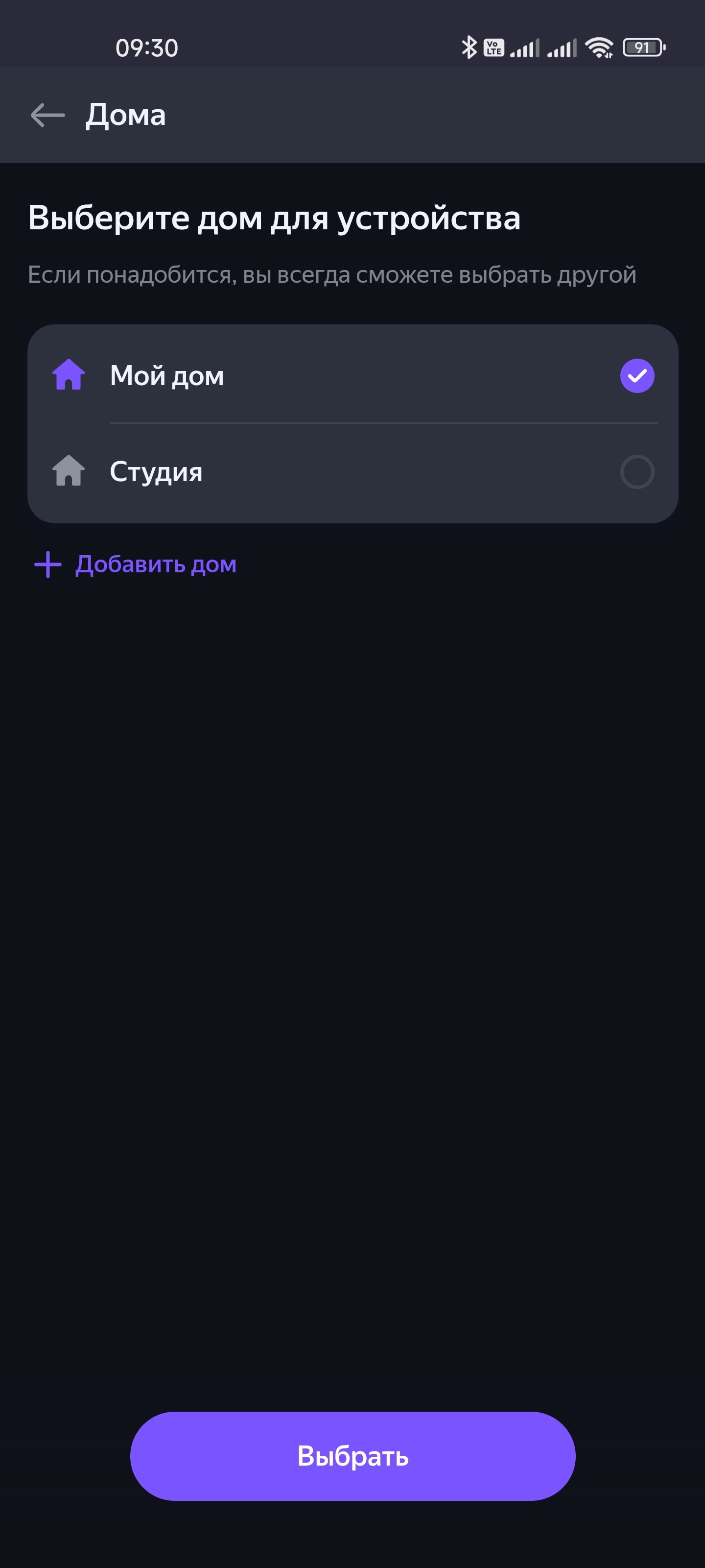Начинаем добавлять устройства. Подробно покажем процесс на примере розетки, потом будем останавливаться только на ключевых моментах. Приложение подробно описывает все необходимые действия, запутаться будет крайне сложно. После подключения выбираем дом, в котором устройство будет работать, комнату — все как мы видели чуть выше, когда подключали колонку.