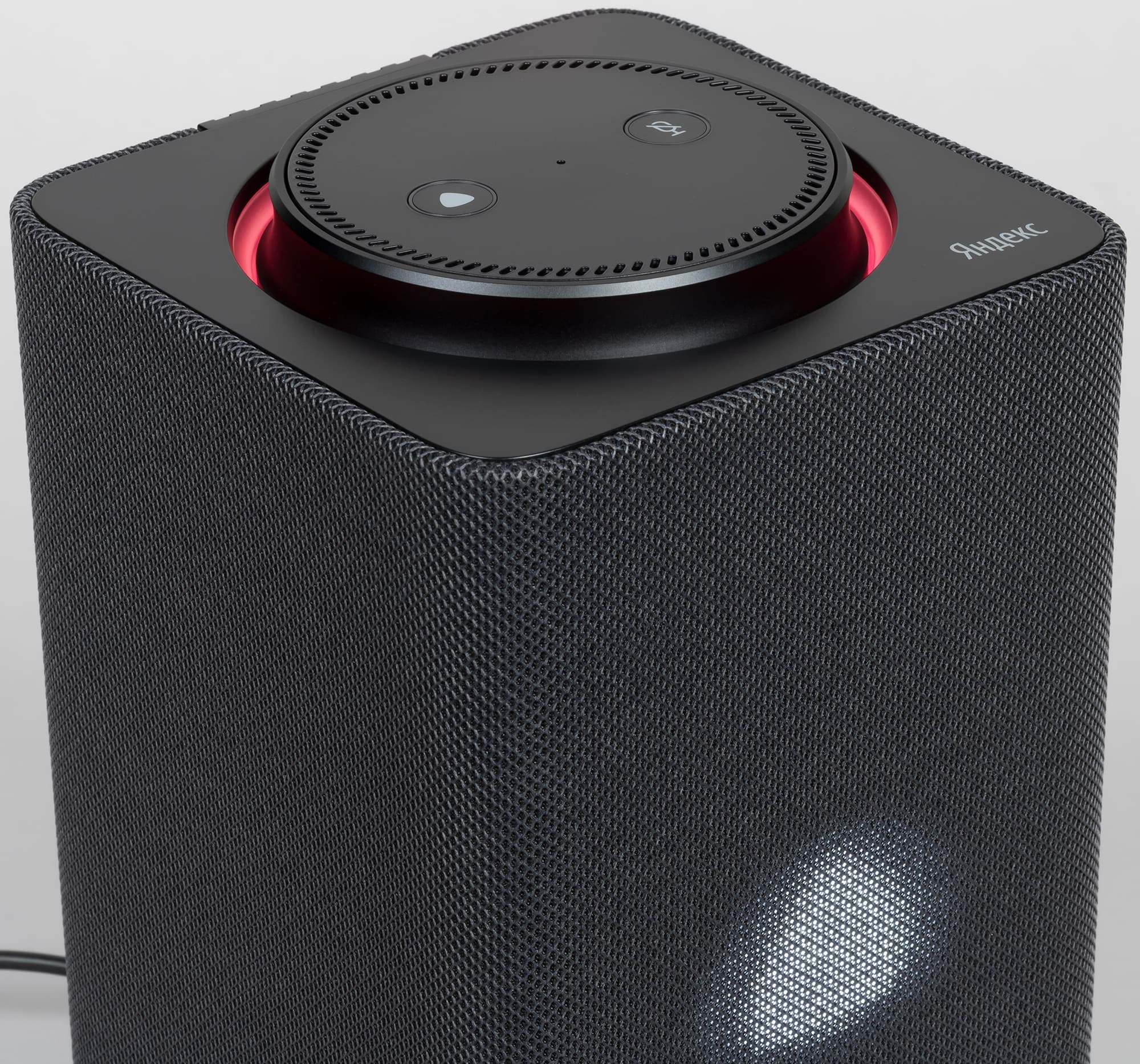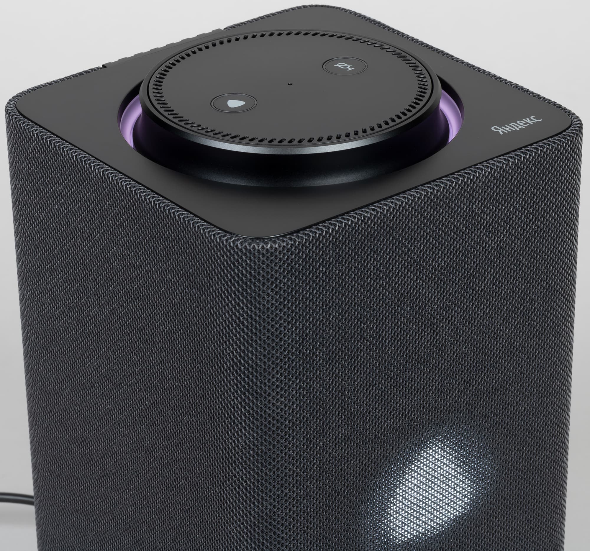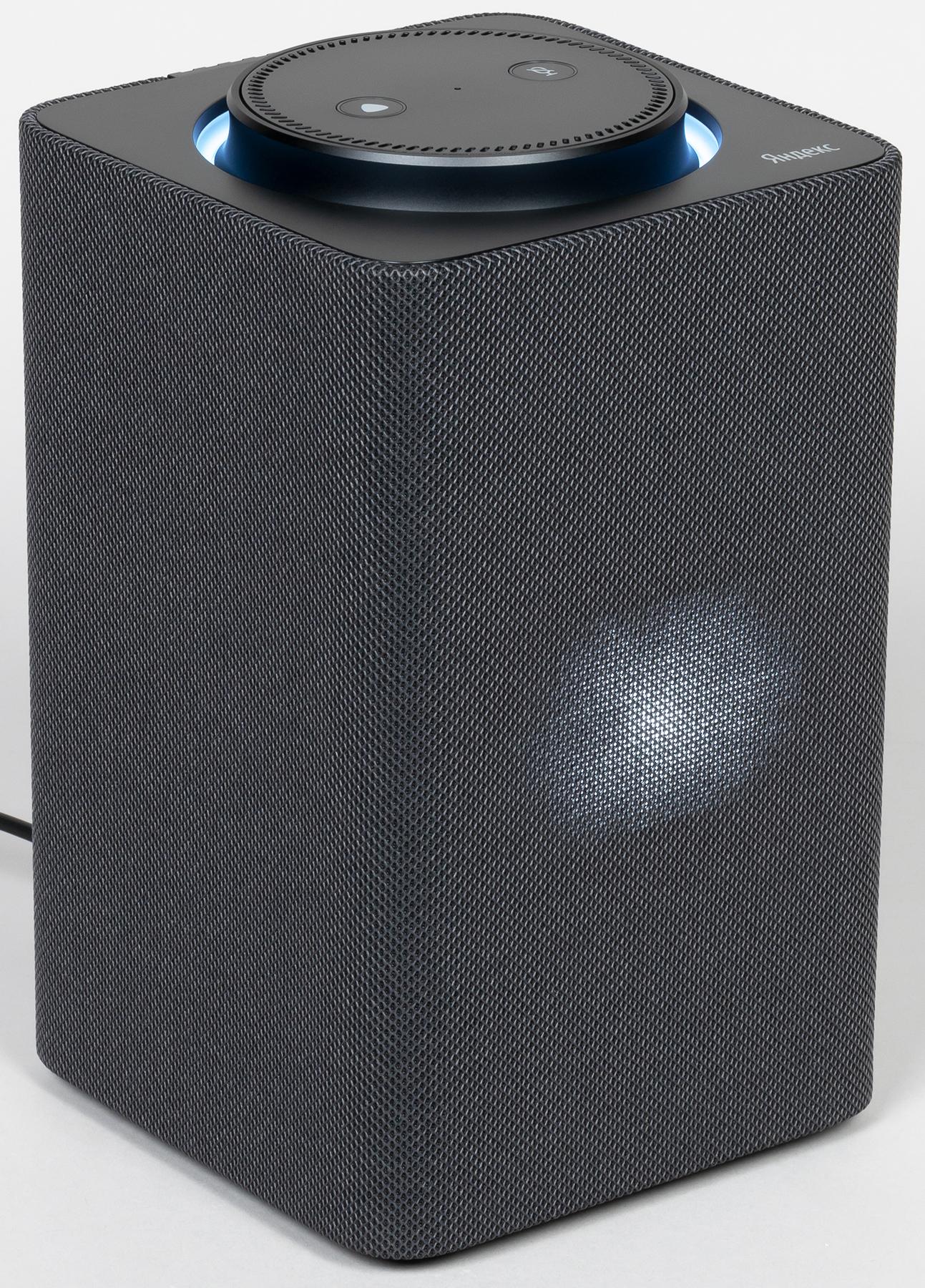 Обтянутый звукопроницаемой тканью кожух у новой «Станции» в отличие от предыдущей несъемный — видимо, из-за наличия экрана. На боковых гранях нет никаких декоративных элементов, все максимально просто и элегантно.