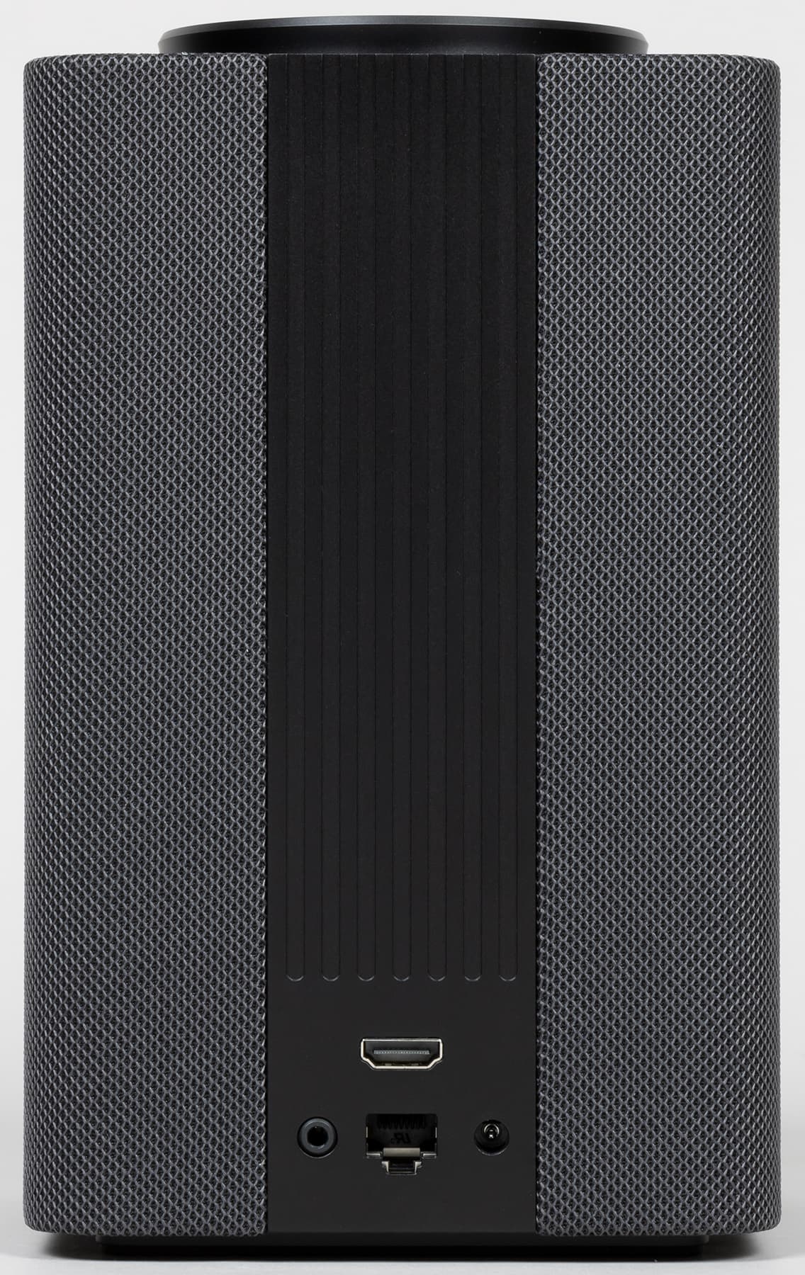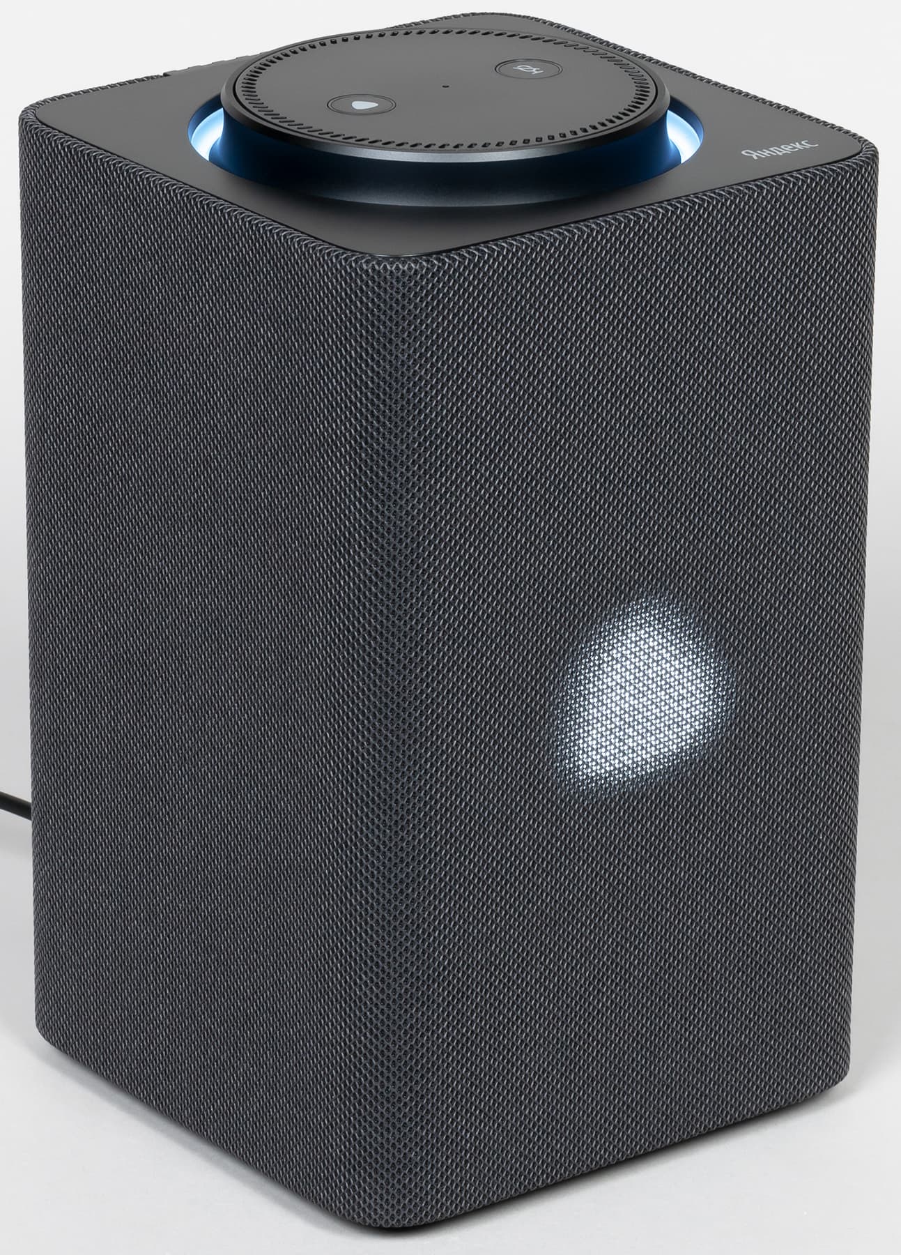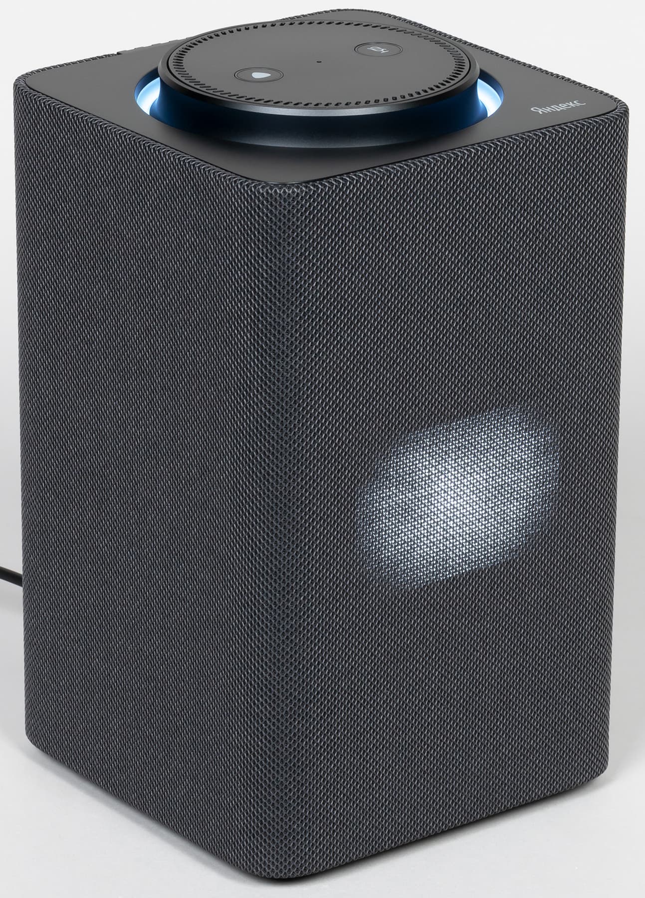 Обтянутый звукопроницаемой тканью кожух у новой «Станции» в отличие от предыдущей несъемный — видимо, из-за наличия экрана. На боковых гранях нет никаких декоративных элементов, все максимально просто и элегантно.