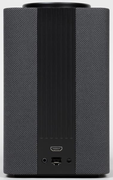 Под тканью на передней панели расположен LED-экран, к работе которого мы еще неоднократно вернемся — в том числе, в видеообзоре, который можно найти в самом конце этого тестирования. Параметры у экрана довольно впечатляющие: разрешение 25×16, то есть 400 светодиодов. При этом у каждого — 256 градаций яркости, потому анимация получается довольно плавной и красивой. На задней стенке мы видим радиатор для пассивного охлаждения, а также разъемы: для подключения питания, видеовыход HDMI 2.0, аудиовыход миниджек, сетевой RJ-45.