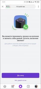 Занимает этот процесс меньше минуты. Далее колонка предлагает включить возможность принимать звонки — дело полезное, включаем.