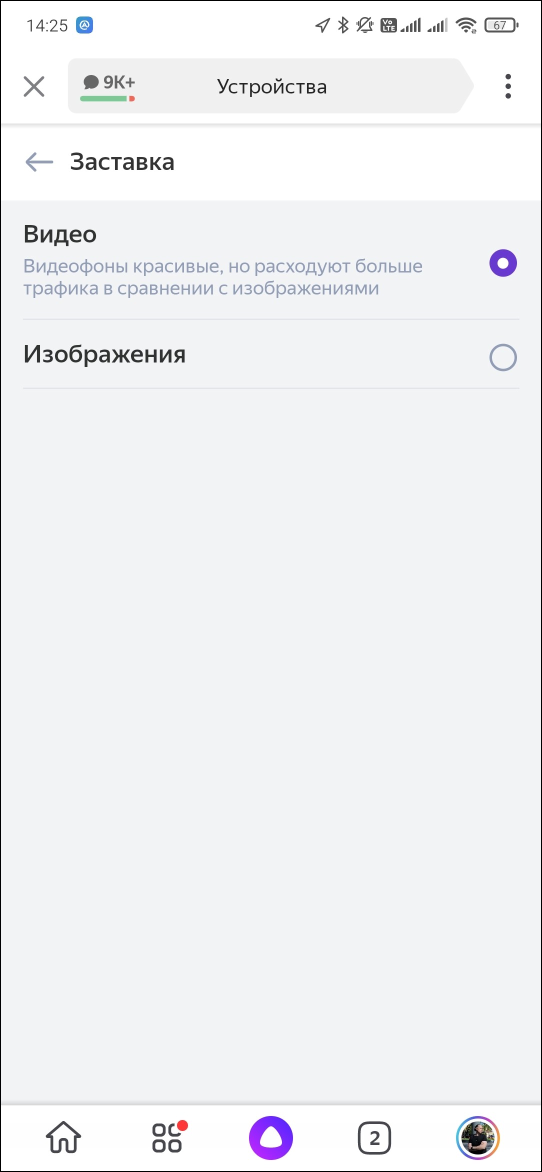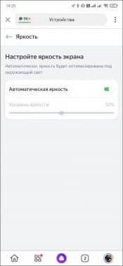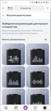 По желанию можно настроить еще ряд параметров. Например, выбрать тип заставки, которая транслируется на подключенный телевизор при бездействии — изображение или видео. Если ограничений по расходу трафика нет, есть смысл выбрать видео — получается красиво. Есть настройки и у дисплея — можно выбрать тип визуализации звучащей музыки, а также настроить яркость. Выключателя у экрана нет, но если сдвинуть ползунок полностью влево — он погаснет, что иногда бывает полезно.