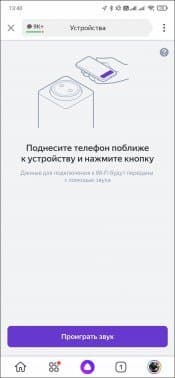 Мы решили для начала подключиться «по старинке» — через беспроводную сеть. Выбираем, подключаем — тут все как обычно. Но есть небольшой нюанс: в сетях 5 ГГц «Яндекс.Станция Макс» работает не слишком-то стабильно — это заметили и мы, и другие пользователи устройства. Есть смысл воспользоваться сетью 2,4 ГГц — особенно учитывая, что устройства для «умного дома» все равно поддерживают только ее. Теоретически могут возникнуть проблемы с воспроизведением видео с разрешением 4K, но на практике мы с ними не столкнулись. Далее подносим гаджет, с которого производится настройка, к колонке — он воспроизводит не самые приятные на свете звуки, после чего «Станция» некоторое время осуществляет подключение.
