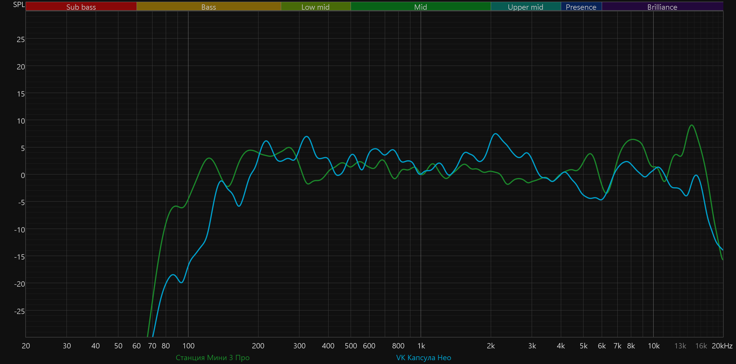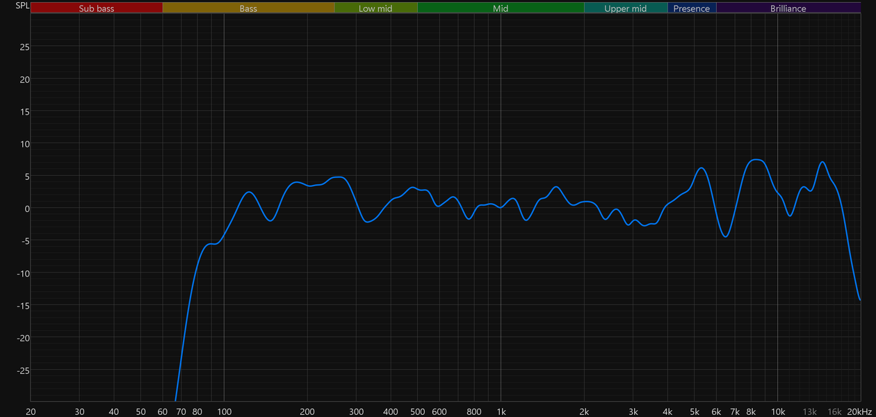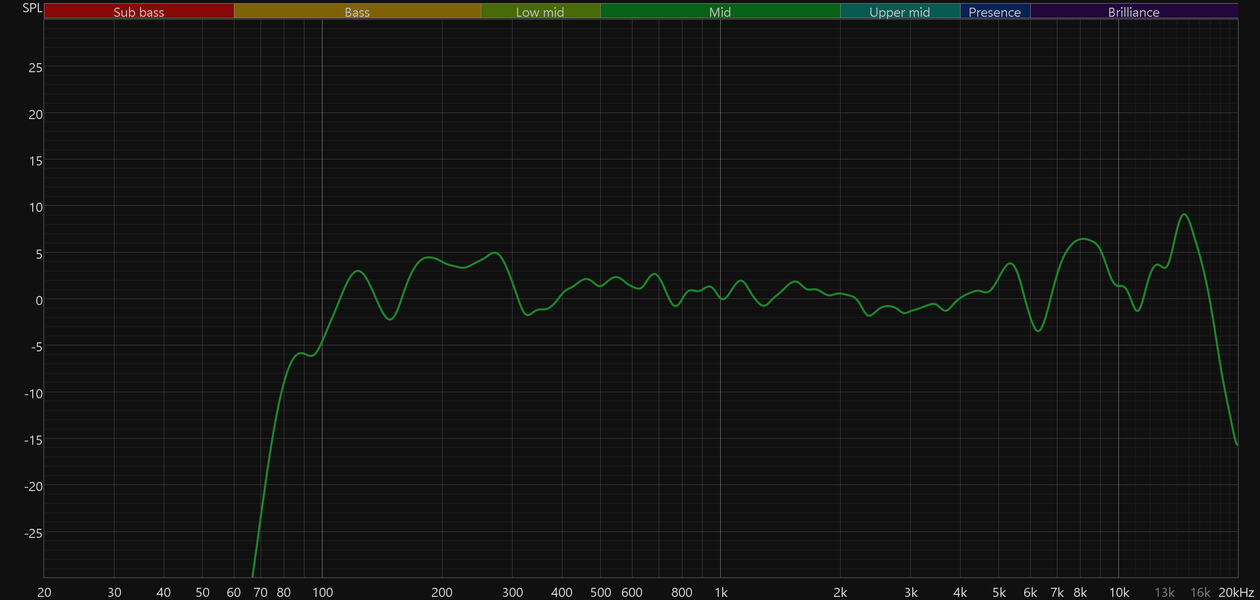 При этом позитивные изменения по сравнению с базовой моделью и слышны, и видны на графиках. Бас стал чуть более выражен, а главное — не стало провала в районе 6 кГц, который негативно сказывался сразу на многом: от звучания перкуссий и малого барабана до разборчивости вокала.