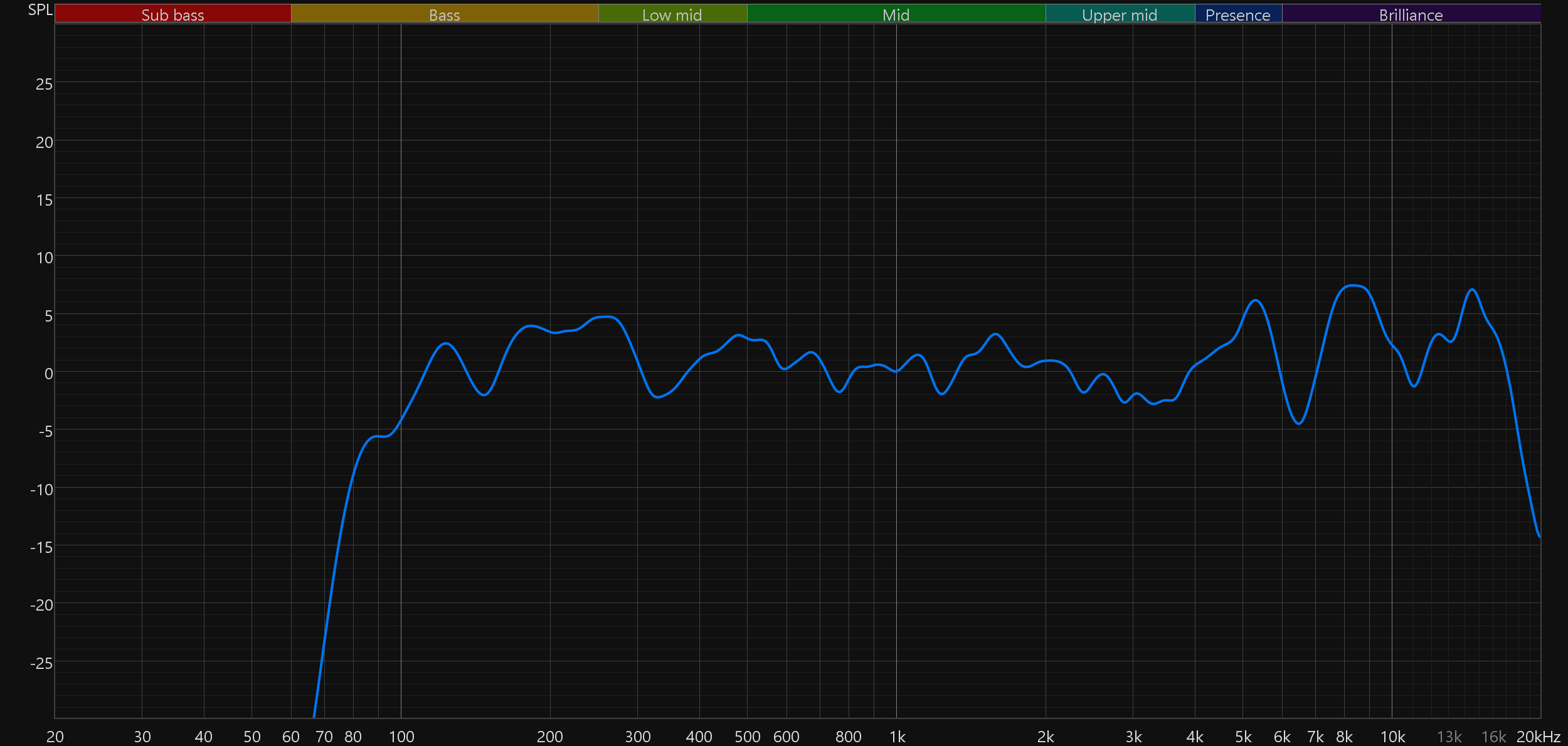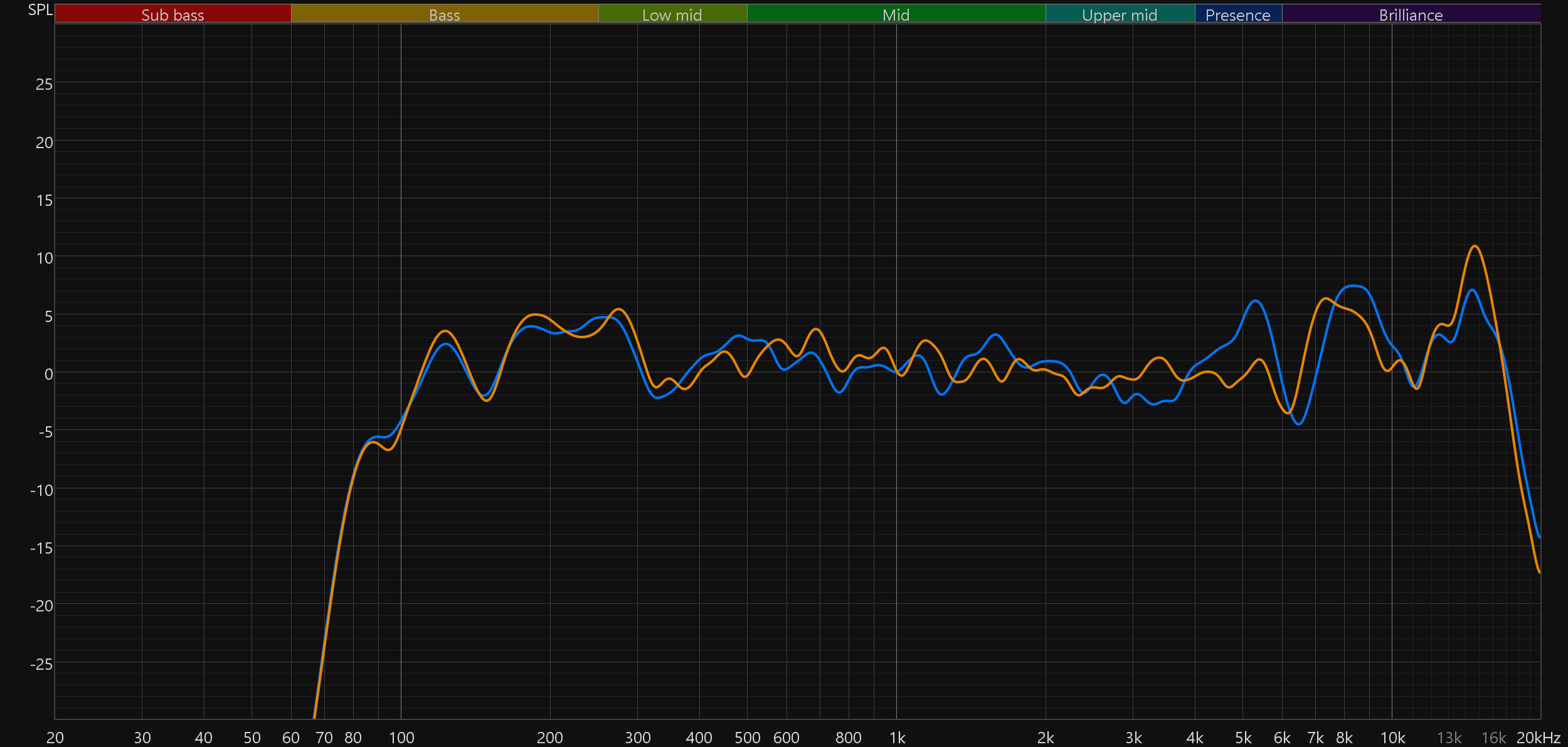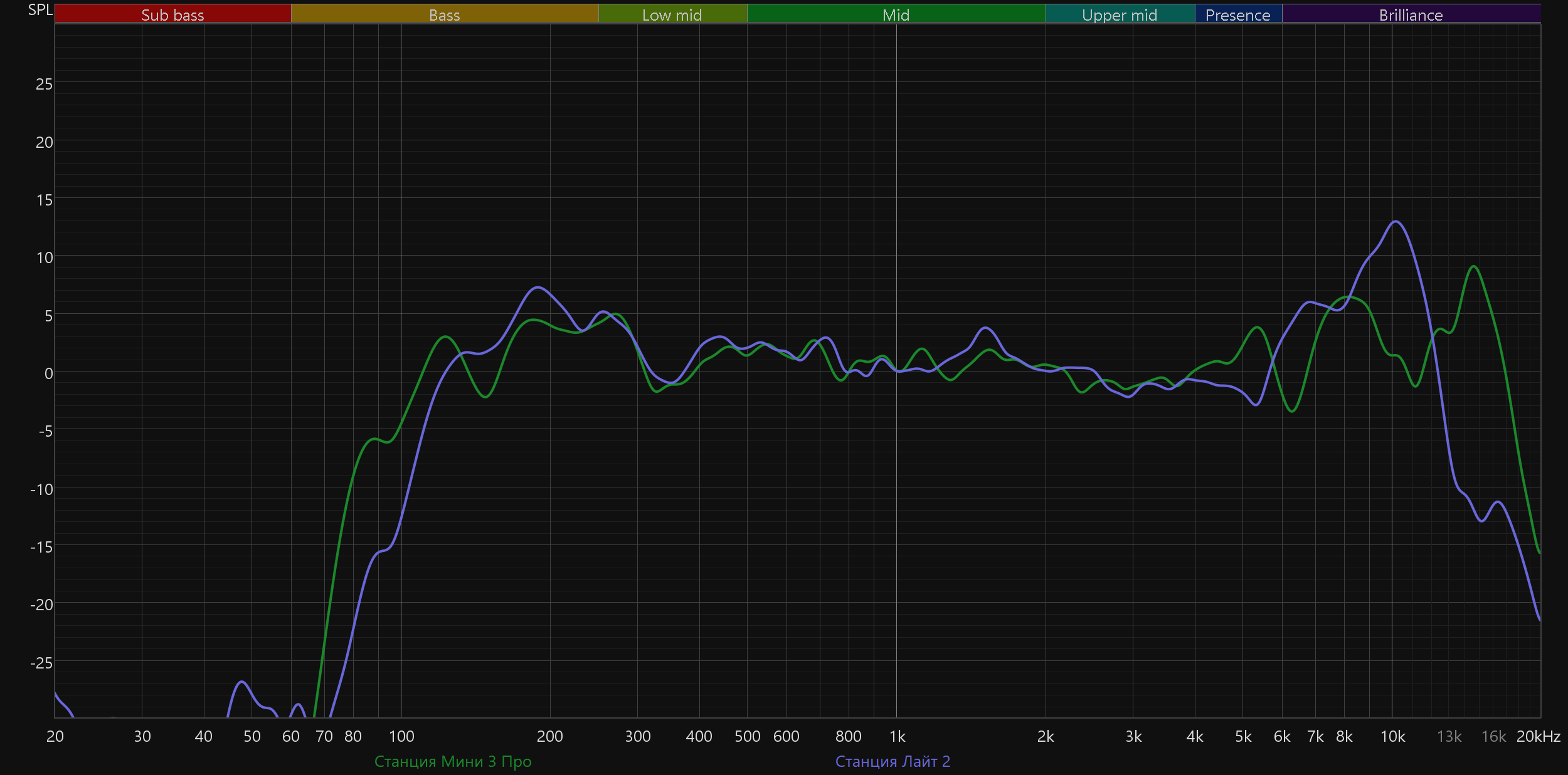 При этом позитивные изменения по сравнению с базовой моделью и слышны, и видны на графиках. Бас стал чуть более выражен, а главное — не стало провала в районе 6 кГц, который негативно сказывался сразу на многом: от звучания перкуссий и малого барабана до разборчивости вокала.
