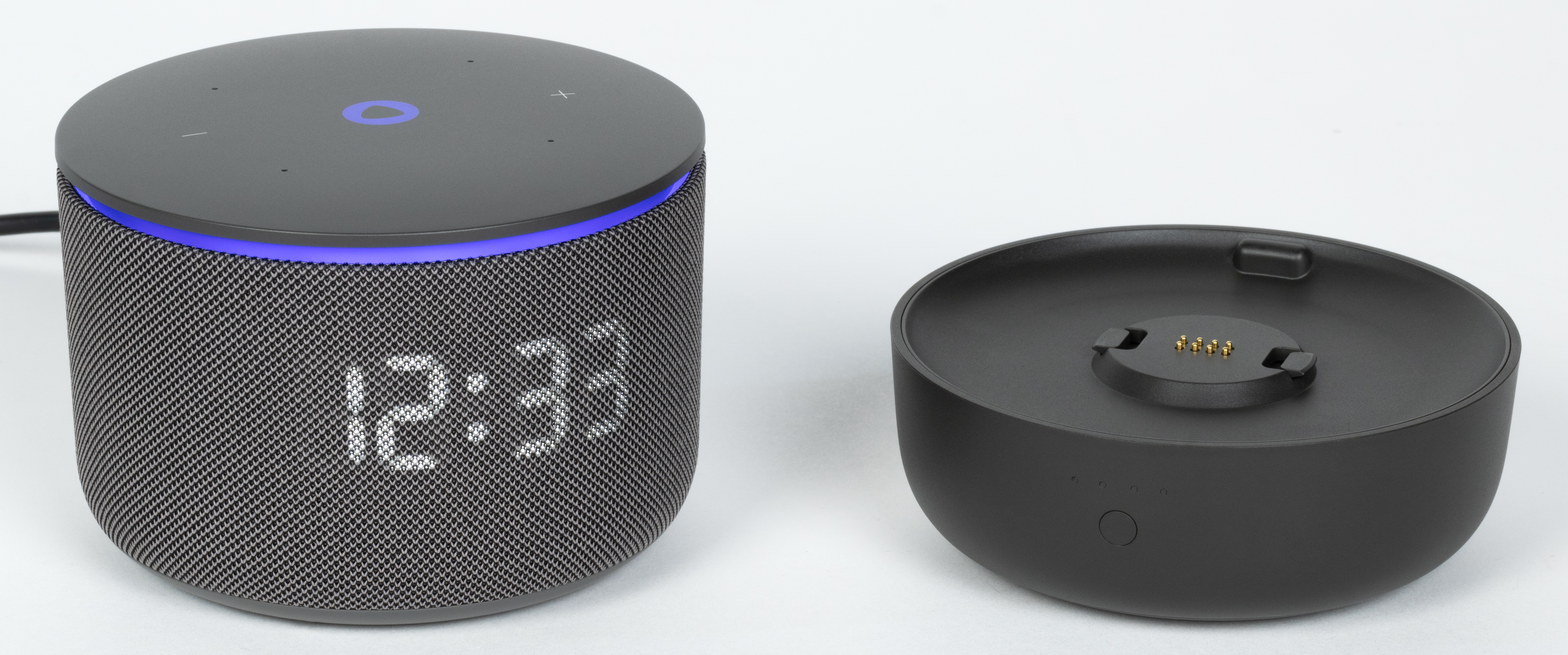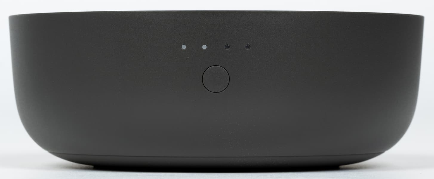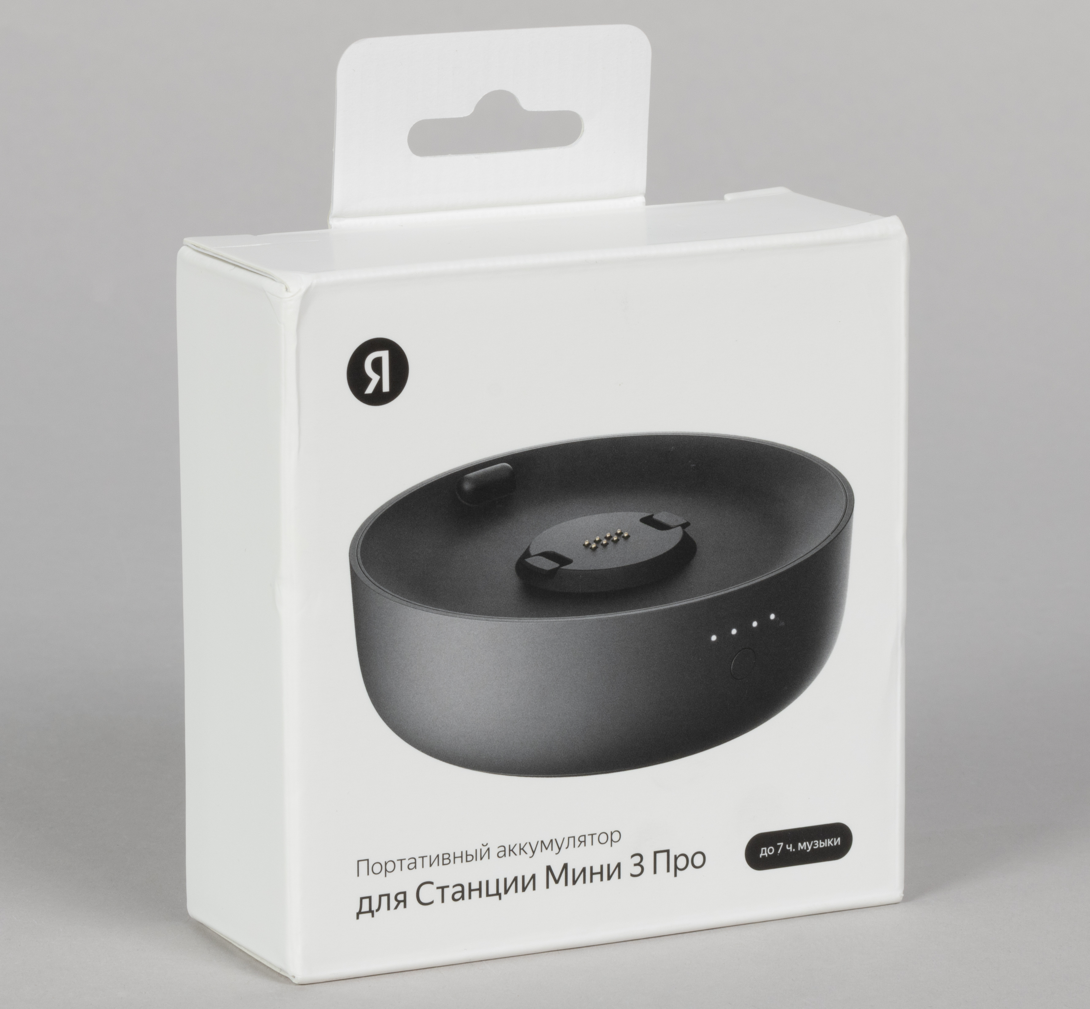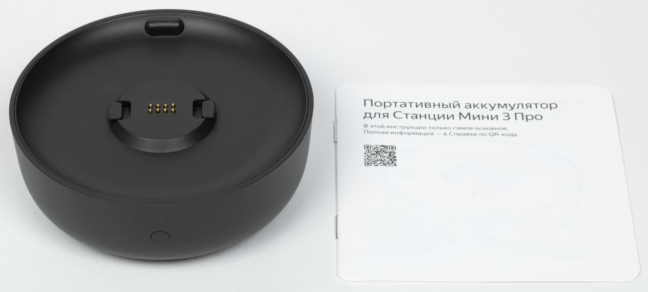 Верхняя панель сделана чуть выпуклой, благодаря этому управлять колонкой с помощью касаний и свайпов стало немного удобнее. А теперь взглянем на аккумулятор, который можно прикрепить к «Яндекс Станции Мини 3 Про». Он выдержан в том же стиле, что и сама колонка: строгий, лаконичный, без лишнего декора.
