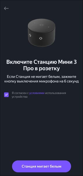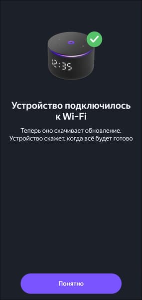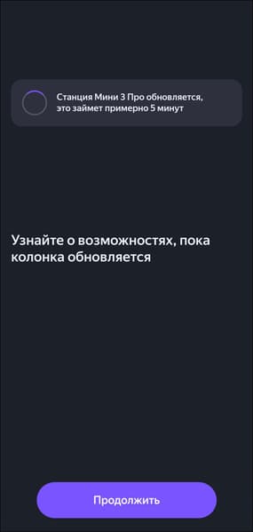 После подключения к сети «Станция Мини» проверяет наличие обновлений встроенного ПО и, если они доступны, предлагает установить их. Обычно этот процесс занимает от трех до пяти минут.