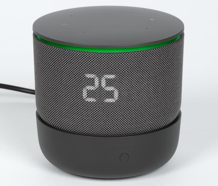 Экран снова выполнен на базе четырех семисегментных индикаторов, дополненных двумя точками-разделителями в центре и еще одной в правом верхнем углу — она используется как обозначение градусов и значок будильника. Как и раньше, Алиса умеет «строить глазки» и выражать «эмоции» через дисплей. Помимо этого, на экране можно увидеть температуру, текущее время, громкость и другие данные.
