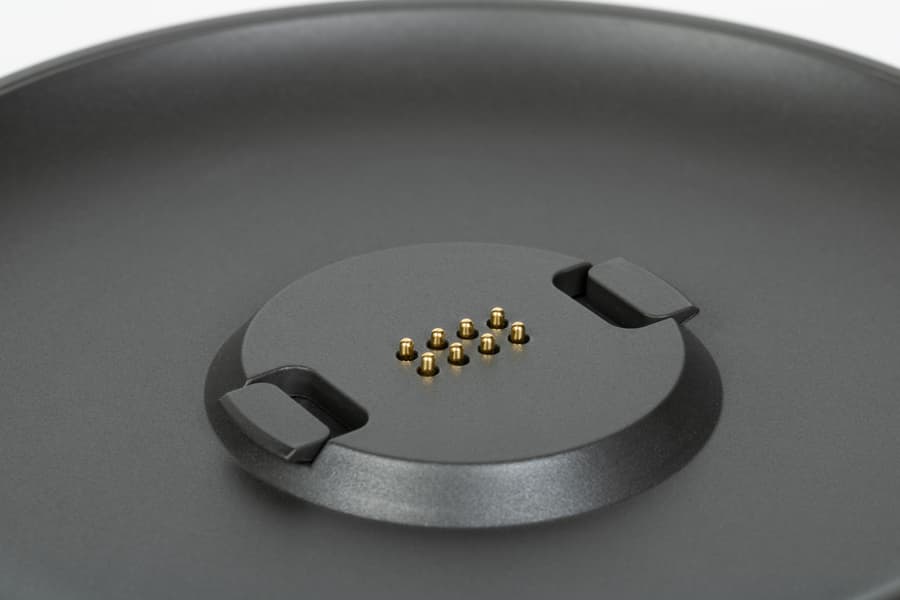 Внутренняя часть модуля точно совпадает с формой нижней панели колонки — она фиксируется в корпусе без зазоров. По центру расположены крепежные элементы и контакты для подключения. Основание модуля снабжено силиконовой накладкой, аналогичной той, что используется в «Станции» — при установке он полностью заменяет штатное дно устройства.