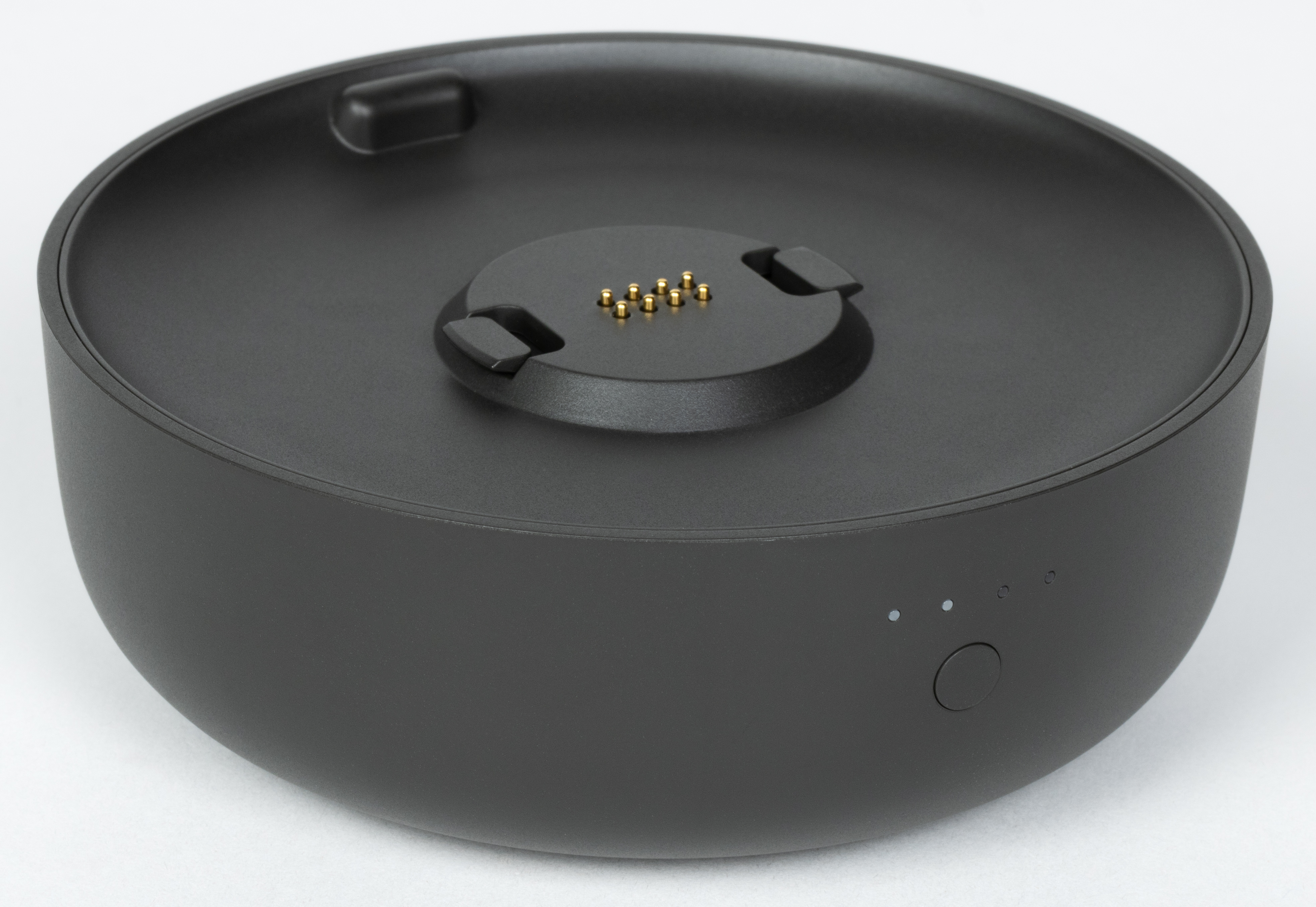 На передней панели аккумуляторного модуля расположен индикатор заряда. Рядом находится круглая кнопка, при нажатии которой загораются белые точки, каждая из которых соответствует примерно 25% уровня. Проверить заряд можно также через приложение «Дом с Алисой» или просто спросить у голосового ассистента: «Алиса, какой уровень заряда?»
