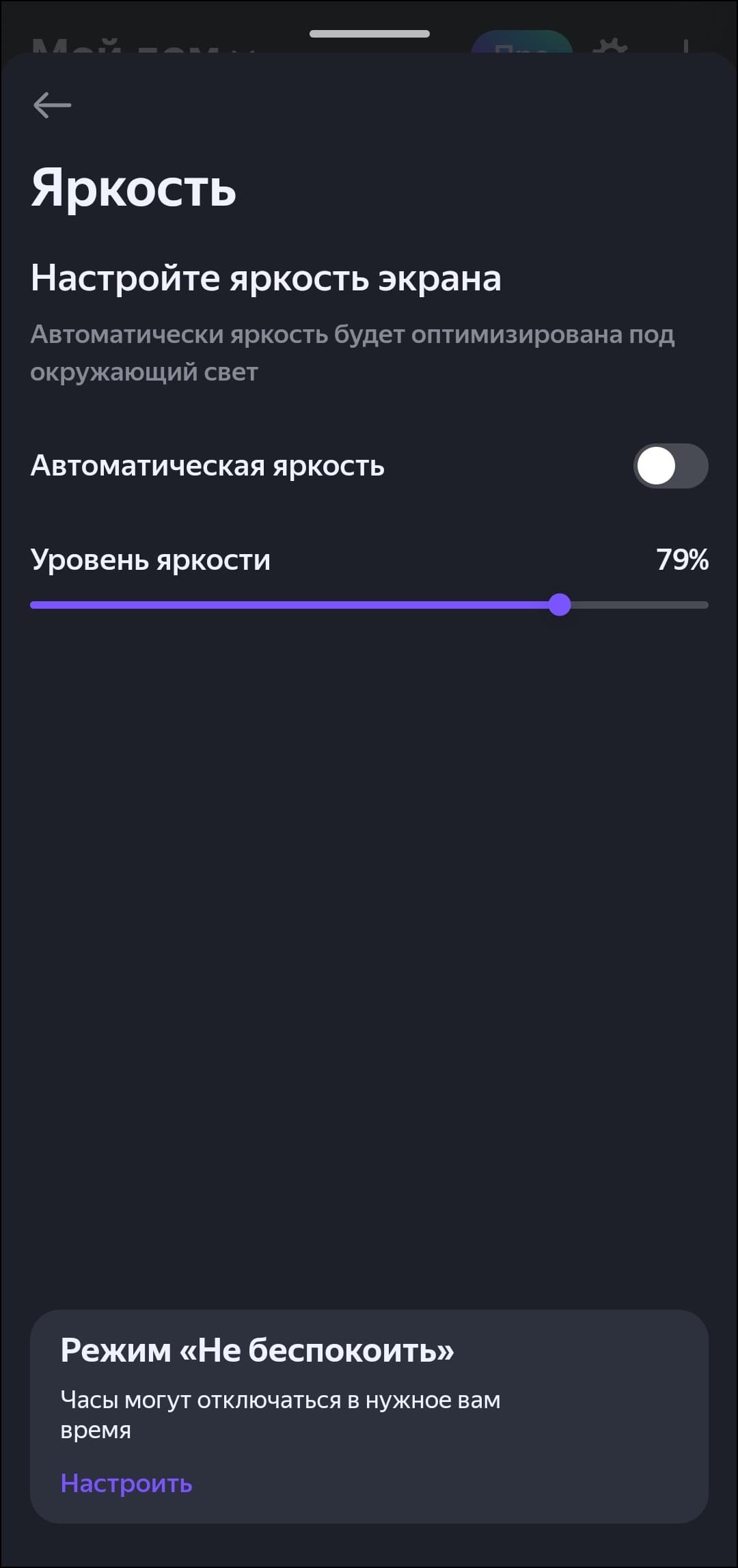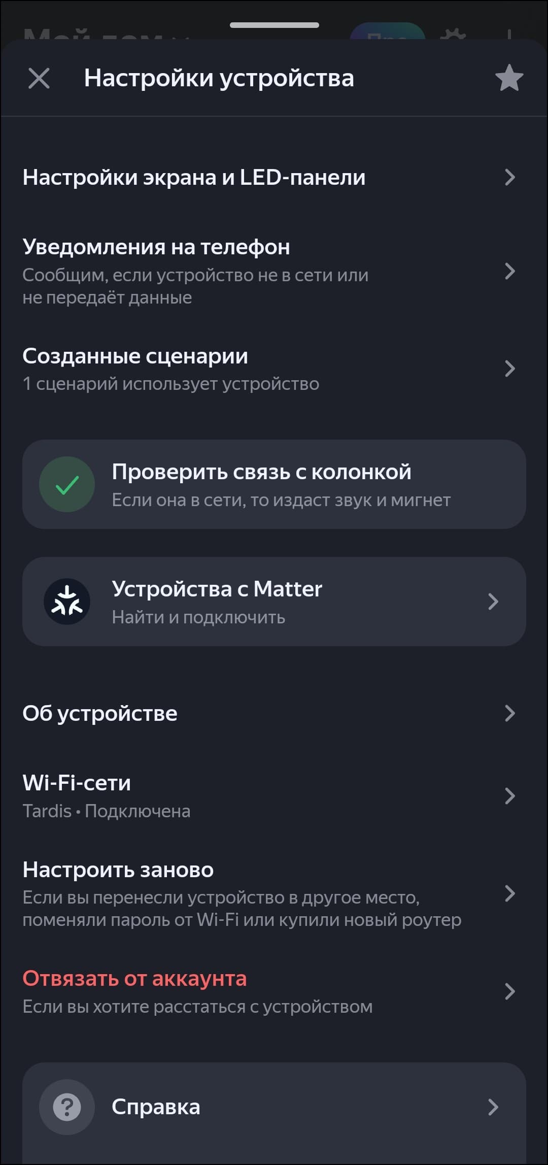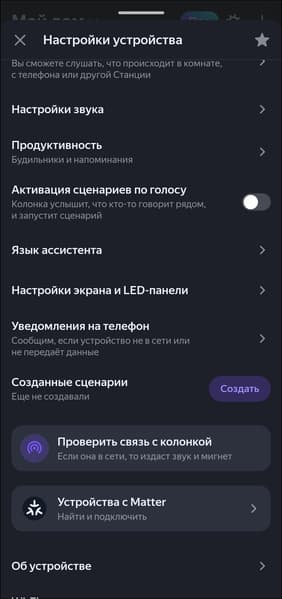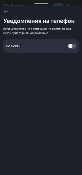 Яркость экрана может настраиваться автоматически, причем делает это довольно корректно. Но если что-то не устраивает, можно изменить ее в ручном режиме, в том числе — «увести в ноль», то есть полностью выключить экран. Если «Станция» вдруг оказалась не в сети, приложение может известить об этом с помощью push-уведомления, также можно проверить связь с колонкой — заставить ее воспроизвести тестовый сигнал.