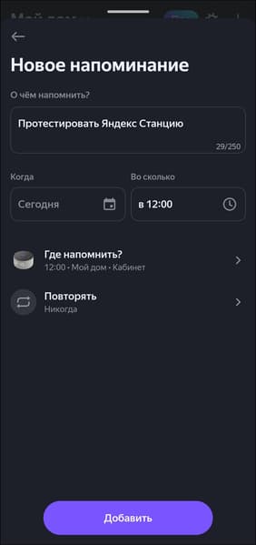 Та же история и с напоминаниями — их зачастую удобнее редактировать в приложении, при этом отдельно радует еще и возможность выбрать, где именно будет воспроизведено напоминание — на колонке в гостиной, кухне или спальне, например.