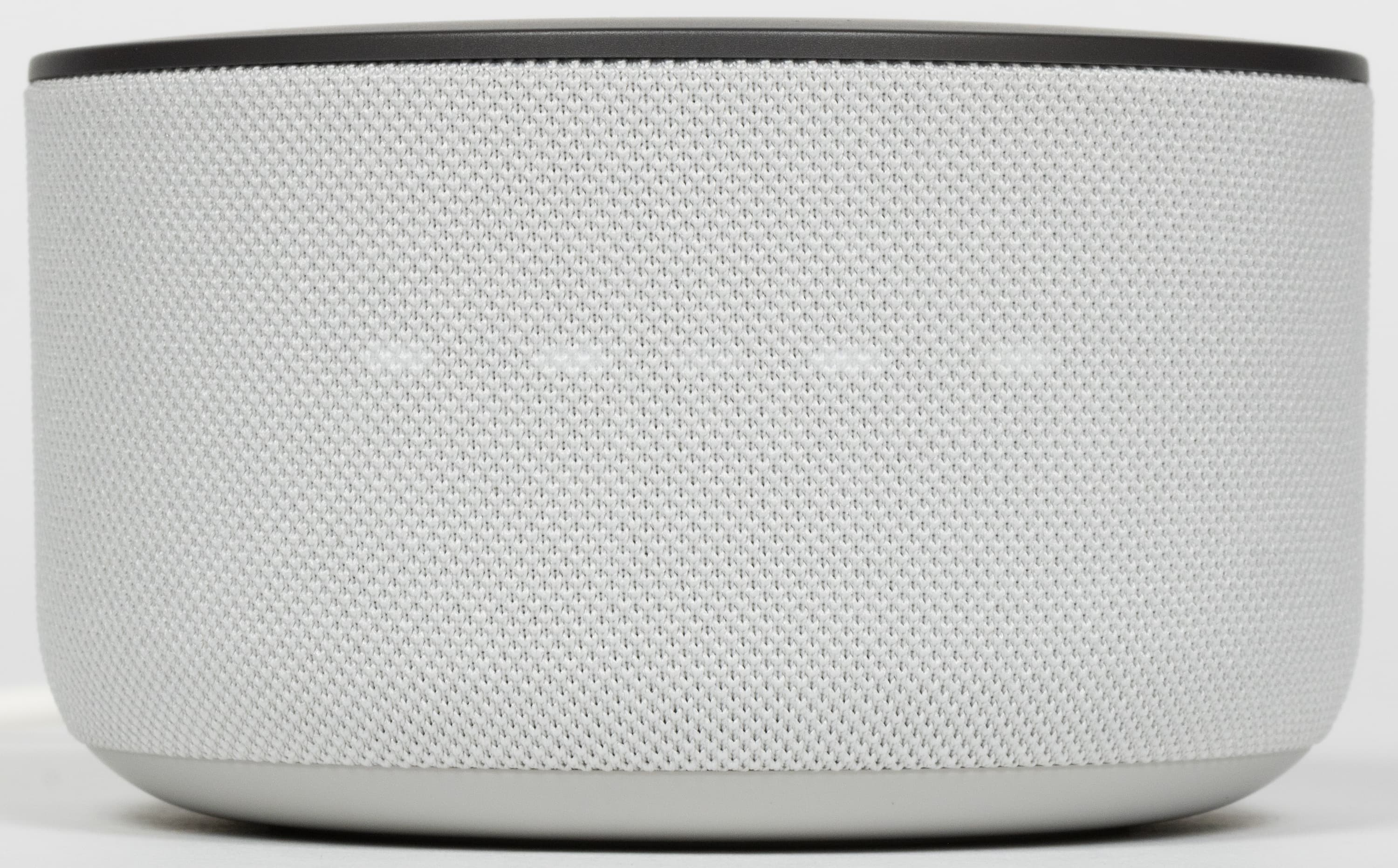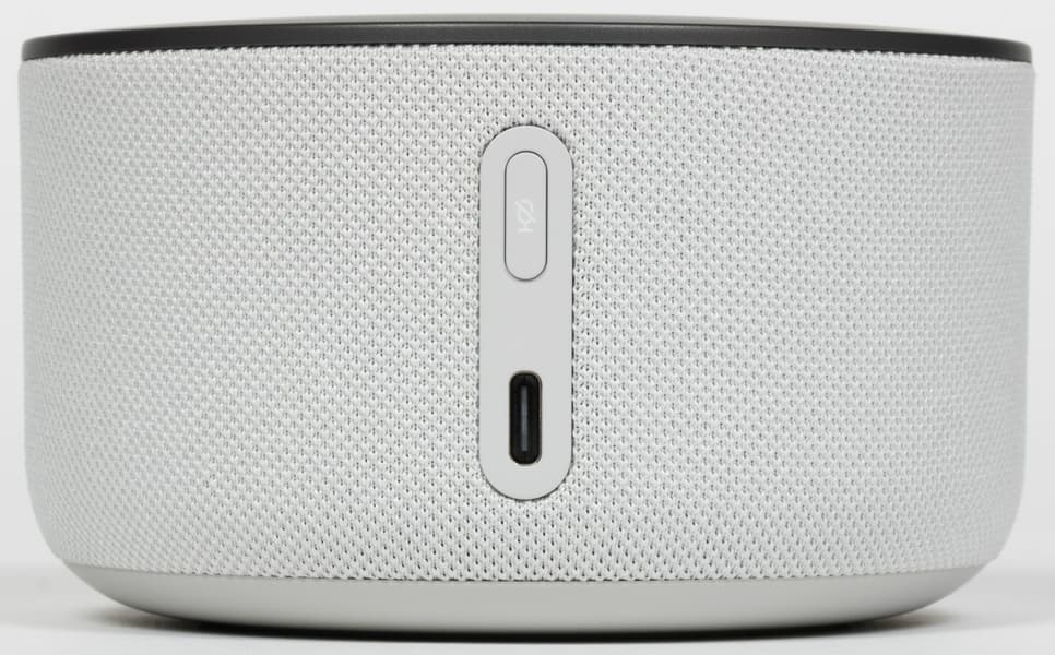 Боковая поверхность обтянута тканью, приятной как на вид, так и на ощупь. У нас на тестировании была самая светлая модель, потому мы могли в полной мере оценить устойчивость покрытия к загрязнениям. Водоотталкивающей пропитки нет, жидкость быстро впитывается в ткань, что не очень хорошо — от разного рода брызг колонку лучше защитить. Что же касается пыли и пятен от прикосновений — они практически не появляются, либо слабо заметны на тканевой поверхности.