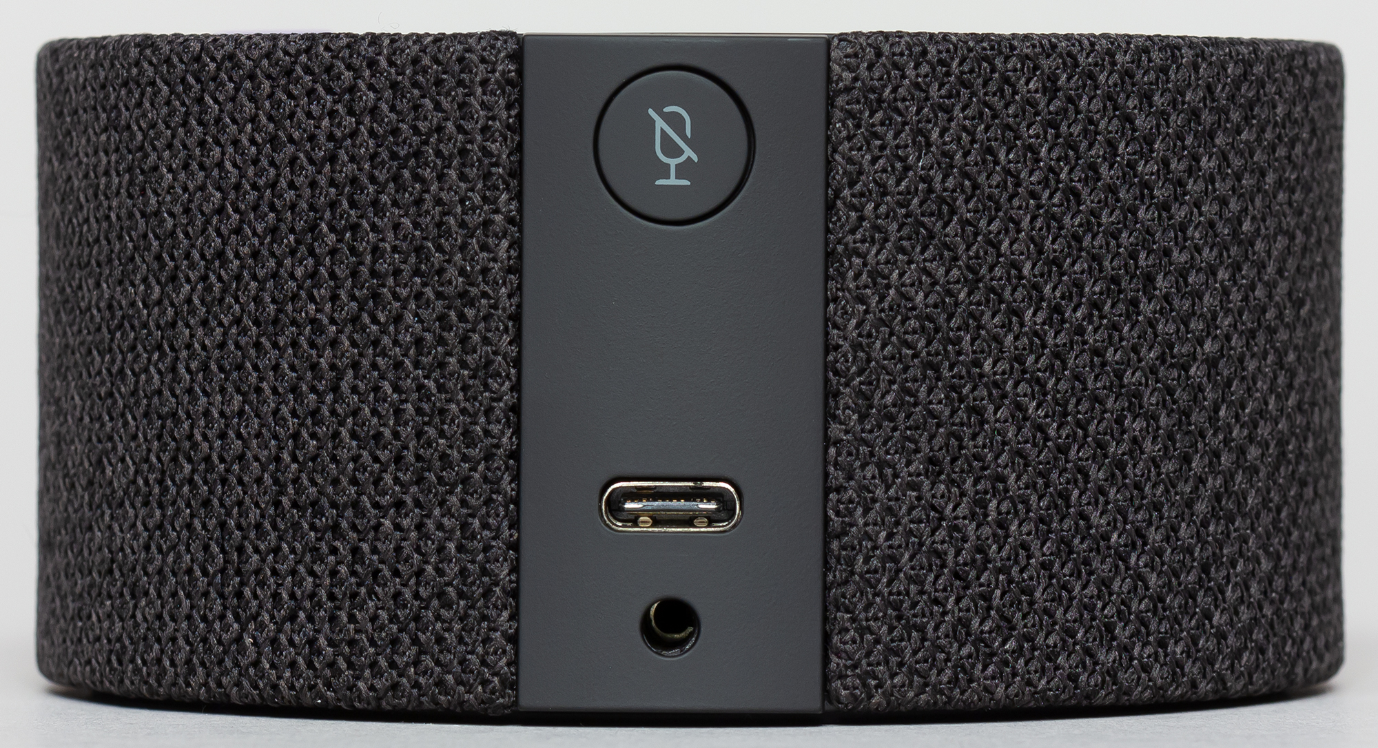 Также на боковой части колонки расположилась небольшая панель с разъемом питания USB Type-C, Aux-выходом миниджек 3,5 мм и единственной кнопкой, которая отвечает за выключение микрофонов.