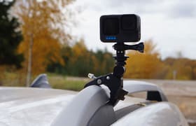 Недостатки камеры остались теми же, что у предыдущей модели: отсутствие резьбового штативного отверстия, склонность к перегреву и неустойчивая работа мобильного приложения. Впрочем, в сравнении с плюсами это такие мелочи, которые даже не заметишь. Ключевые достоинства GoPro Hero10 Black: сверхэффективный стабилизатор (да как же они это сделали?!), высокая разрешающая способность, умный механизм усиления при съемке в темноте, дополнительный фронтальный цветной дисплей, прямая трансляция на популярные или пользовательские ресурсы без участия ПК, компактность, малый вес.