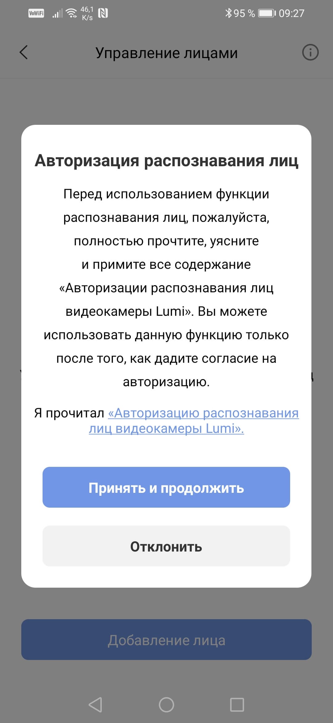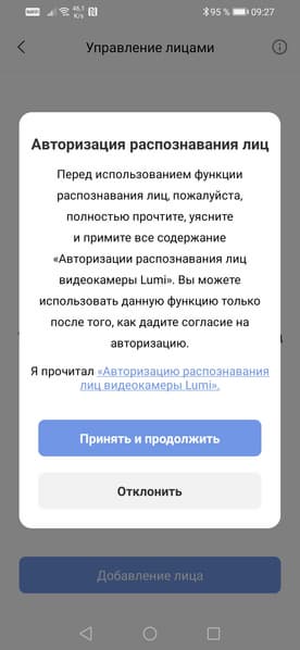Необычными для бытовой камеры функциями можно и нужно считать распознавание лиц и жестов. Добавление лица в память камеры производится крайне необычным способом. Для добавления в базу какого-то лица потребуется смартфон с установленным приложением Aqara. После того, как смартфону даны все необходимые разрешение, делается снимок лица камерой смартфона. И лишь теперь это лицо (точнее, его электронный слепок) отправляется в камеру напрямую и помещается в списке зарегистрированных лиц под заданным именем.