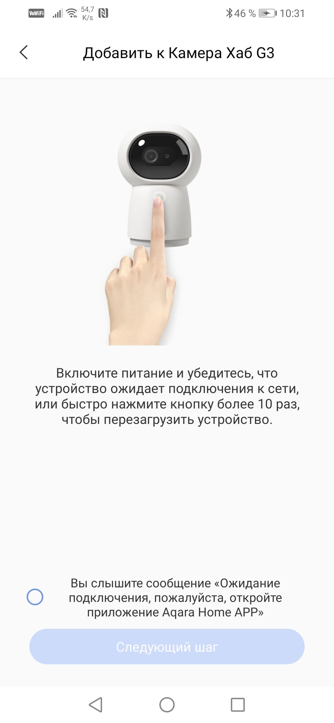 Процесс подключения камеры прост до чрезвычайности. Прежде всего следует выбрать из списка устройств Aqara нужное устройство. После этого в приложении отобразится пошаговый мастер с подробным описанием действий, которые необходимо произвести. Результатом этих действий будет сформированный программой QR-код, содержащий имя Wi-Fi-точки и пароль к ней. Этот код нужно показать камере, которая, немного подумав, подключится к сети.