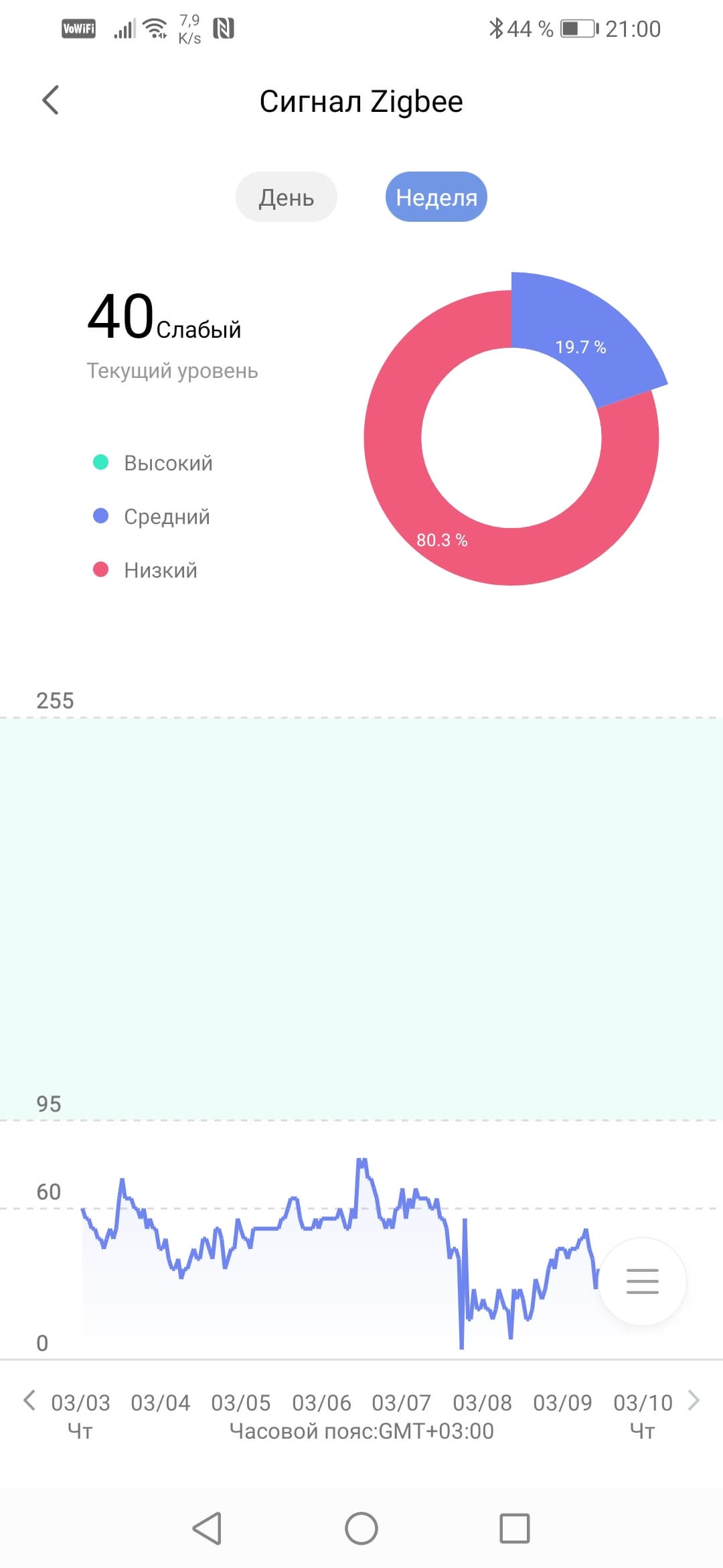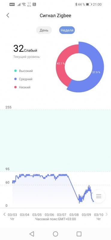 С ролью хаба, или центра, управляющего подключенными устройствами умного дома, камера справляется безупречно. По всей видимости, мощность/чувствительность ее беспроводного адаптера, с помощью которого осуществляется связь с подключенными устройствами, несколько выше, чем в отдельном устройстве-хабе. По крайней мере, для камеры не составляет труда «достучаться» до розетки и температурного датчика, которые находятся в другом здании и сигнал от которых вынужден преодолевать четыре серьезных глухих препятствия. Да, и розетка и датчик сообщают о низком уровне сигнала Zigbee, однако разрывов связи не происходит.