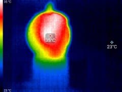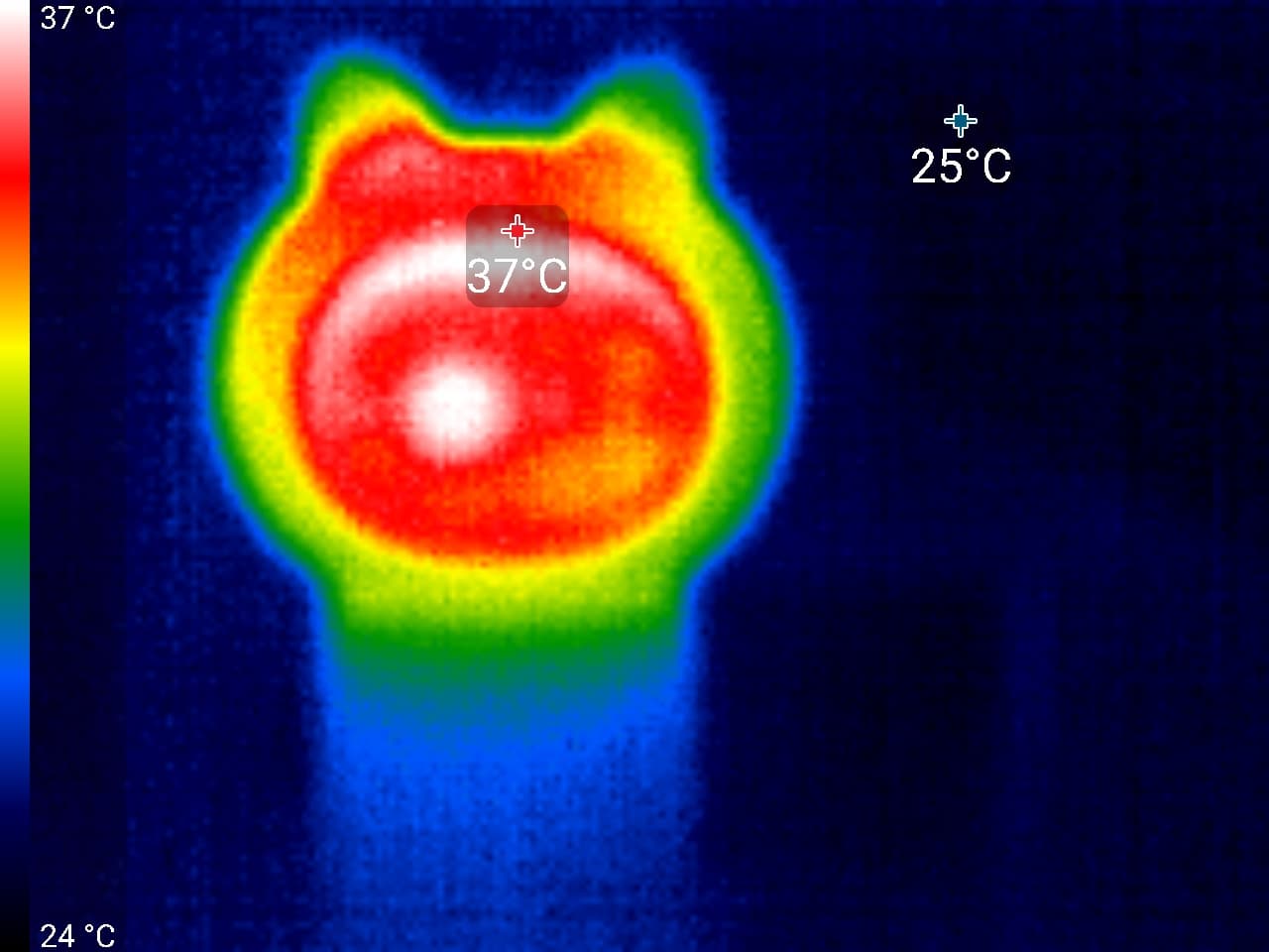 Видно, что основной нагрев происходит в верхней части шарового блока камеры, где находится сенсор и основная управляющая электроника. Эти 37 °C не несут никакой опасности, камеру можно размещать где угодно, рядом со шторами и другими «горючими» объектами.