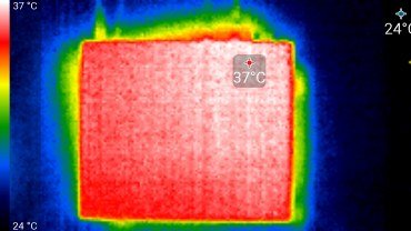 Какими бы экономичными ни были электронные компоненты, каждая работающая микросхема непременно выделяет тепло. Учитывая полное отсутствие в приборе систем вентиляции и охлаждения, можно ожидать довольно высокие температуры во время длительной работы устройства, как внутри корпуса, так и снаружи. Проверим наши подозрения.