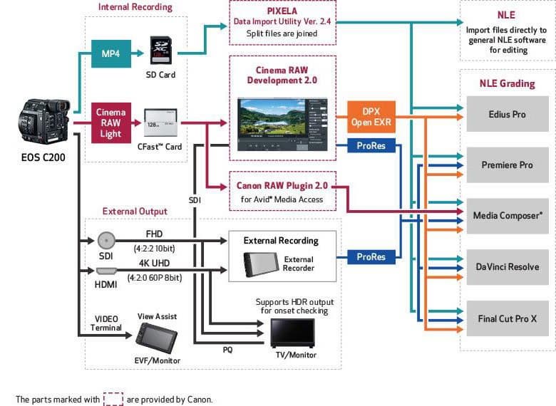 Еще одно преимущество нового формата заключается в том, что и так впечатляющий 13-ступенчатый динамический диапазон для записи MP4 и Canon Log / Log 3 в камере EOS C200 расширен до 15 ступеней в режиме Cinema RAW Light (при обработке с помощью программного обеспечения Canon Cinema RAW Development 2.0 с Canon Log 2). Компания Canon заключила ряд договоров с владельцами ведущих видеоредакторов, а также с разработчиками ПО. Теперь, к примеру, видеоредактор DaVinci Resolve будет поддерживать обработку Cinema RAW Light. Аналогичный договор был заключен с Avid Technology, поэтому если в программное обеспечение Media Composer установить плагин Canon RAW, то в нем тоже можно будет производить обработку файлов подобного типа. И конечно, компанией Canon было выпущено свое собственное ПО Cinema RAW Development для редактирования файлов Cinema RAW Light. Компания Grass Valley интегрировала поддержку Cinema RAW Light в версию своего редактора Edius Pro 9 еще в 2017-м. При установке Canon RAW в версию Final Cut Pro X компании Apple это приложение также будет поддерживать редактирование файлов Cinema RAW Light. Уверен, что в самое ближайшее время список совместимого ПО еще расширится.