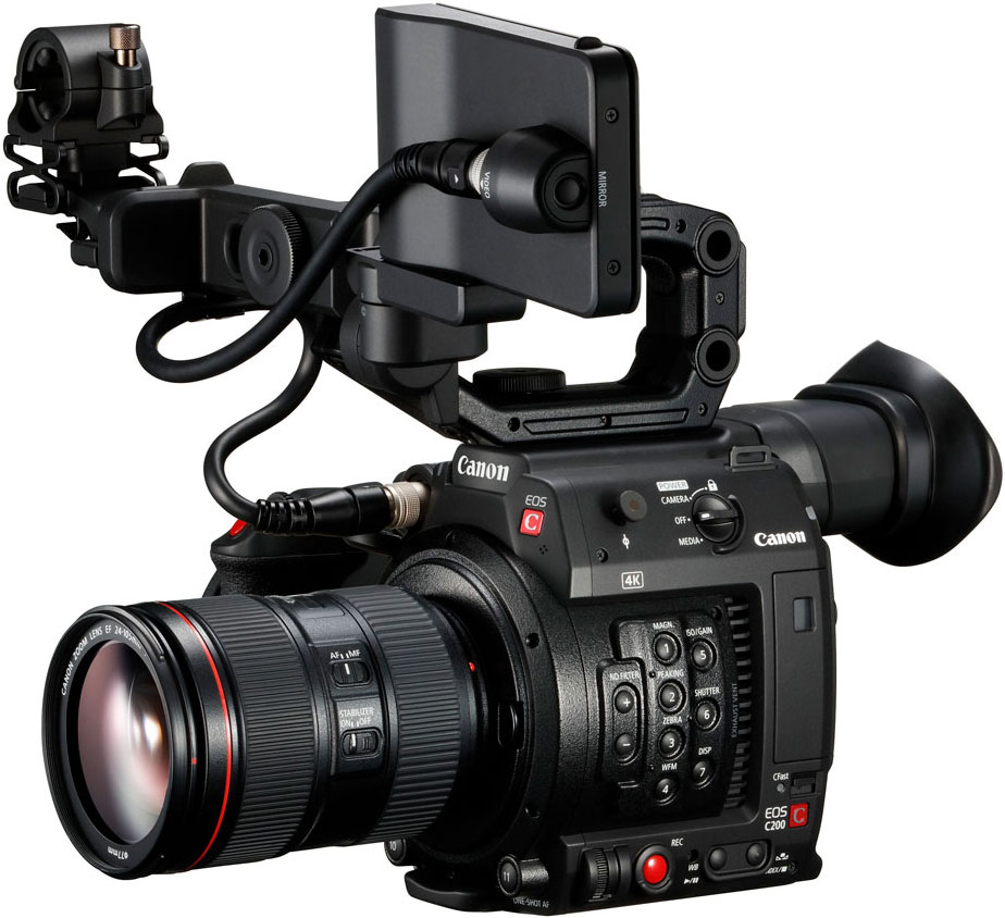 В середине 2017 года компания Canon презентовала свою новую камеру в семействе 4К Cinema EOS — Canon C200, которая займет свое место между моделями C100 Mark II и C300 Mark II. У меня уже был положительный опыт работы с представителями этой линейки, поэтому возможность попробовать в деле новинку я воспринял с большим энтузиазмом. Существует две версии этой модели, C200 и C200B, последняя дешевле за счет отсутствия многочисленных аксессуаров (по сути, это только сама камера). Ко мне на тест попала версия C200 в полном обвесе (поворотный сенсорный дисплей, видоискатель, разные ручки и держатели), за что спасибо компании Canon, поскольку работать с оригинальными аксессуарами намного легче.