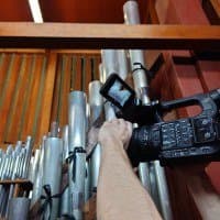 В статье про создание документально-музыкального видеоролика на камеру Canon XF605 мы много жаловались на тяжелые условия съемки и детально описывали особенности подбора оборудования, продиктованные совершенно особым пространством — историческим орга́ном Большого зала Московской консерватории. Но, как говорится, лучше один раз увидеть, чем сто раз услышать. Поэтому в дополнение к основному материалу мы подготовили эту заметку, содержащую кадры бэкстейджа.