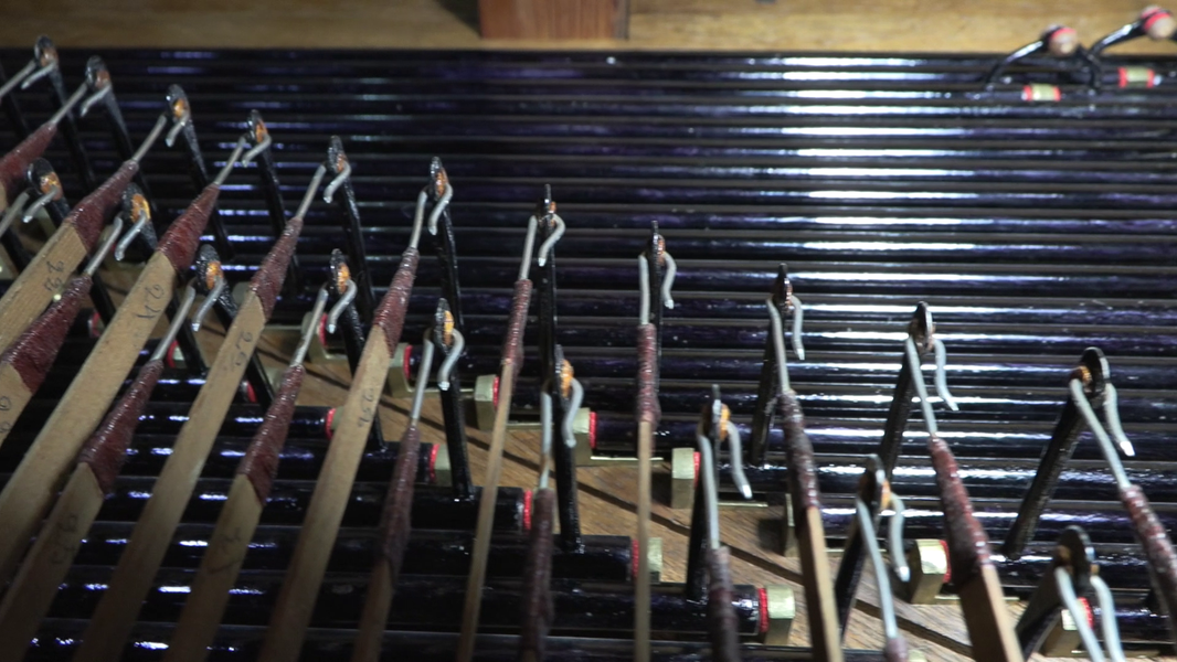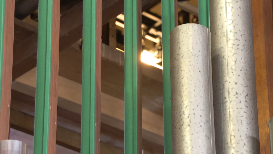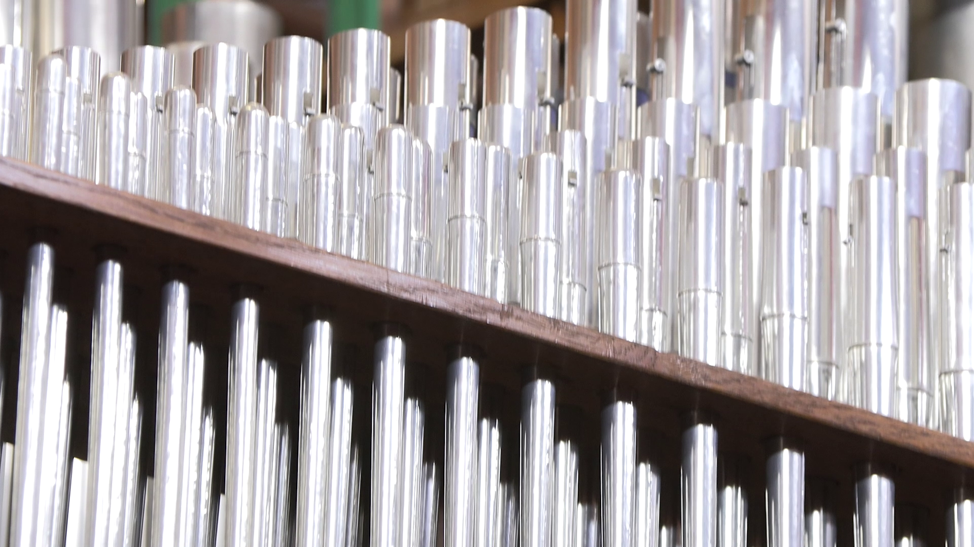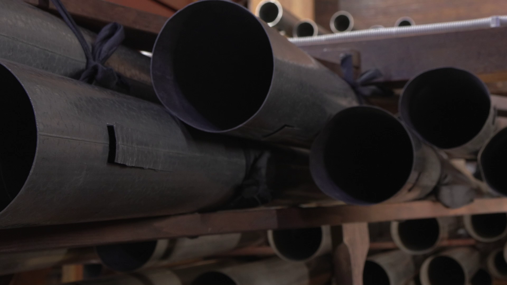 Сложнее было с прово́дками. Исходя из художественной задачи, нам важны были и скорость прово́док, и их длина. Скорость важна для соответствия музыки, длина — для выстраивания правильного «синтаксиса» монтажных фраз. И всё бы ничего, но, как уже было сказано, снимали мы с рук и без какой-либо дополнительной стабилизации, помимо предусмотренной в камере. Конечно, теоретически можно было использовать и штатив-треногу, хотя внутри орга́на это нежелательно (лишнее оборудование, к тому же громоздкое). Но многие планы тогда не удалось бы снять вовсе. Например, этот.