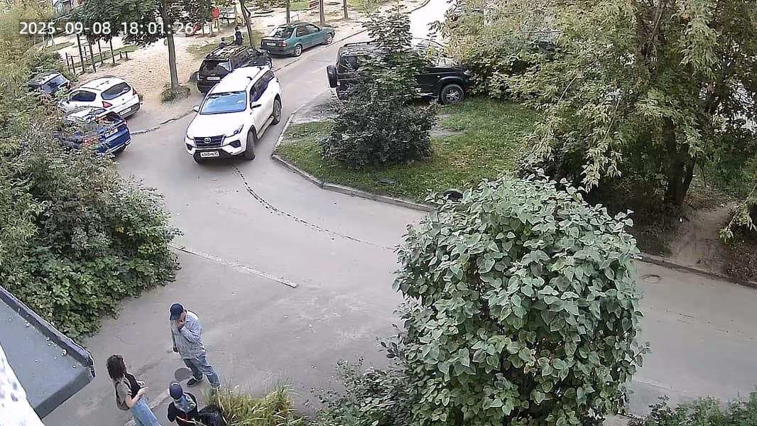 С чувствительностью., как видим, у обеих камер все более чем в порядке. Но что с разрешением? Тут следует призадуматься: почему разработчик сделал такой странный выбор, оснастив комнатную камеру лучшим 5-мегапиксельным сенсором и оставив уличную модель с 3-мегапиксельным? По идее, именно от уличных камер в первую очередь требуется высокая детализация, поскольку в помещении не требуется читать с расстояния мелкие автомобильные номера. Давайте попробуем разглядеть эти пресловутые госномера автомобилей в нашей уличной съемке. Нужно уточнить: расстояние от камеры до проезжающих автомобилей составляет примерно 10 метров.