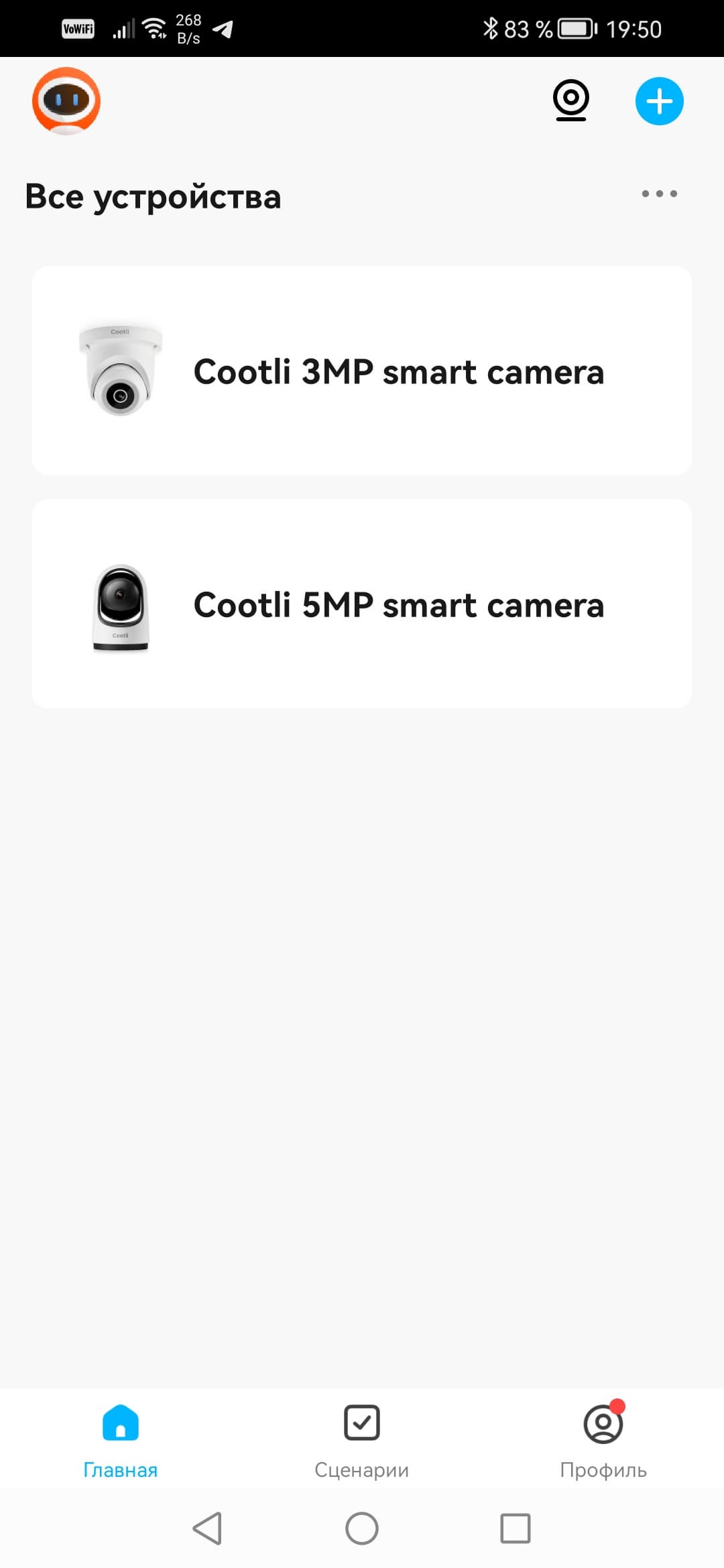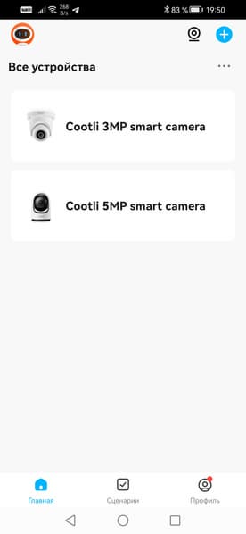 Процесс подключения камер состоит из нескольких шагов. Прежде всего нужно дать аппарату питание и дождаться, пока не закончится тестирование приводов поворота/наклона и перехода в режим сопряжения. После этого можно запускать на смартфоне установленное приложение Cootli с уже имеющейся учетной записью (зарегистрироваться можно через электронную почту, это быстро и просто). В пустом пока интерфейсе приложения требуется нажать иконку добавления устройства, а дальше все происходит почти автоматически. Важно: в смартфоне должен быть включен Bluetooth. Именно с помощью этого типа связи включенная камера сообщает о своем присутствии — в верхней части интерфейса приложения непременно появится плашка с обнаруженной камерой. Достаточно «тапнуть» по этой плашке — и начнется подсоединение устройства. Обе рассматриваемые модели подключаются одинаковым образом.