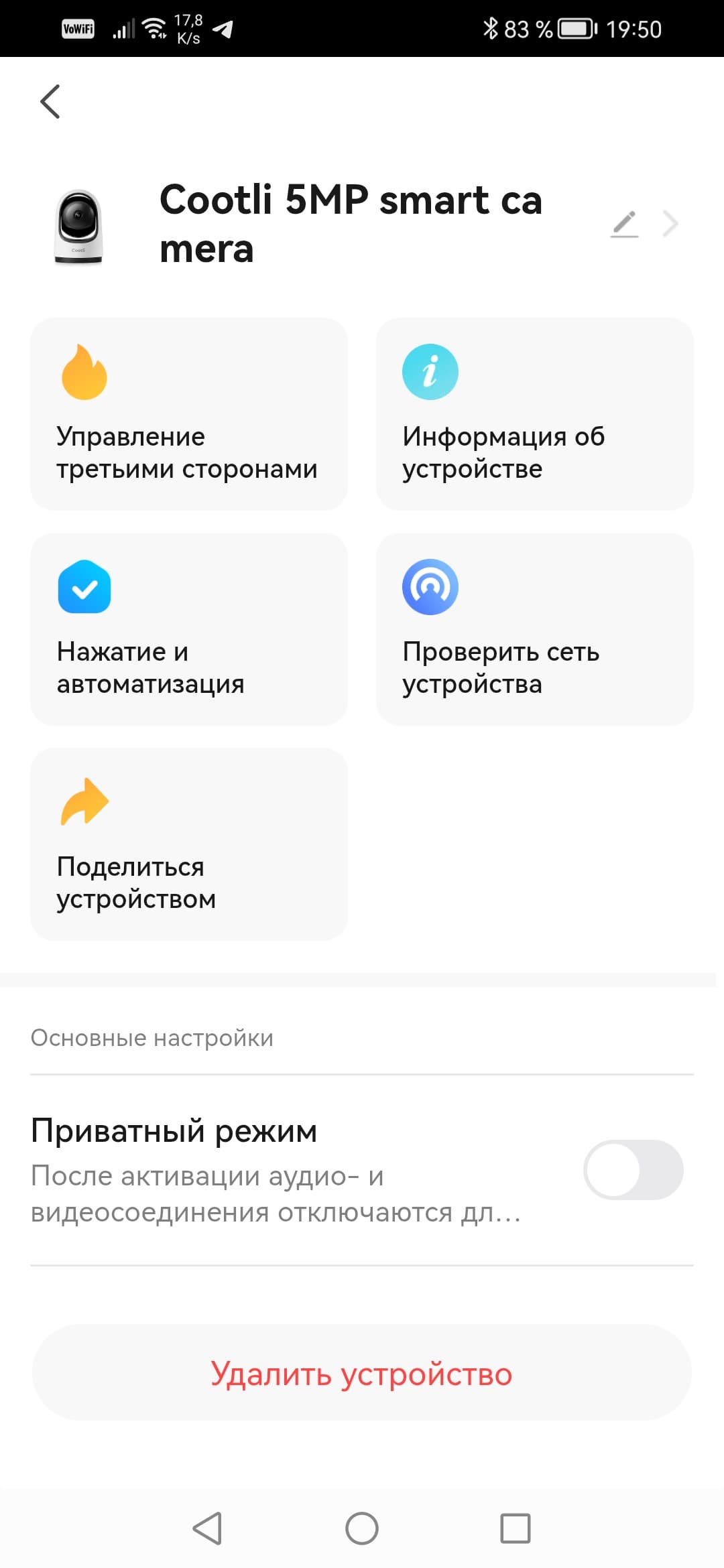 Управление камерами осуществляется через фирменное мобильное приложение, которое так и называется: Cootli. Управление с компьютера невозможно: веб-сервер камеры заблокирован и не подает признаков жизни.