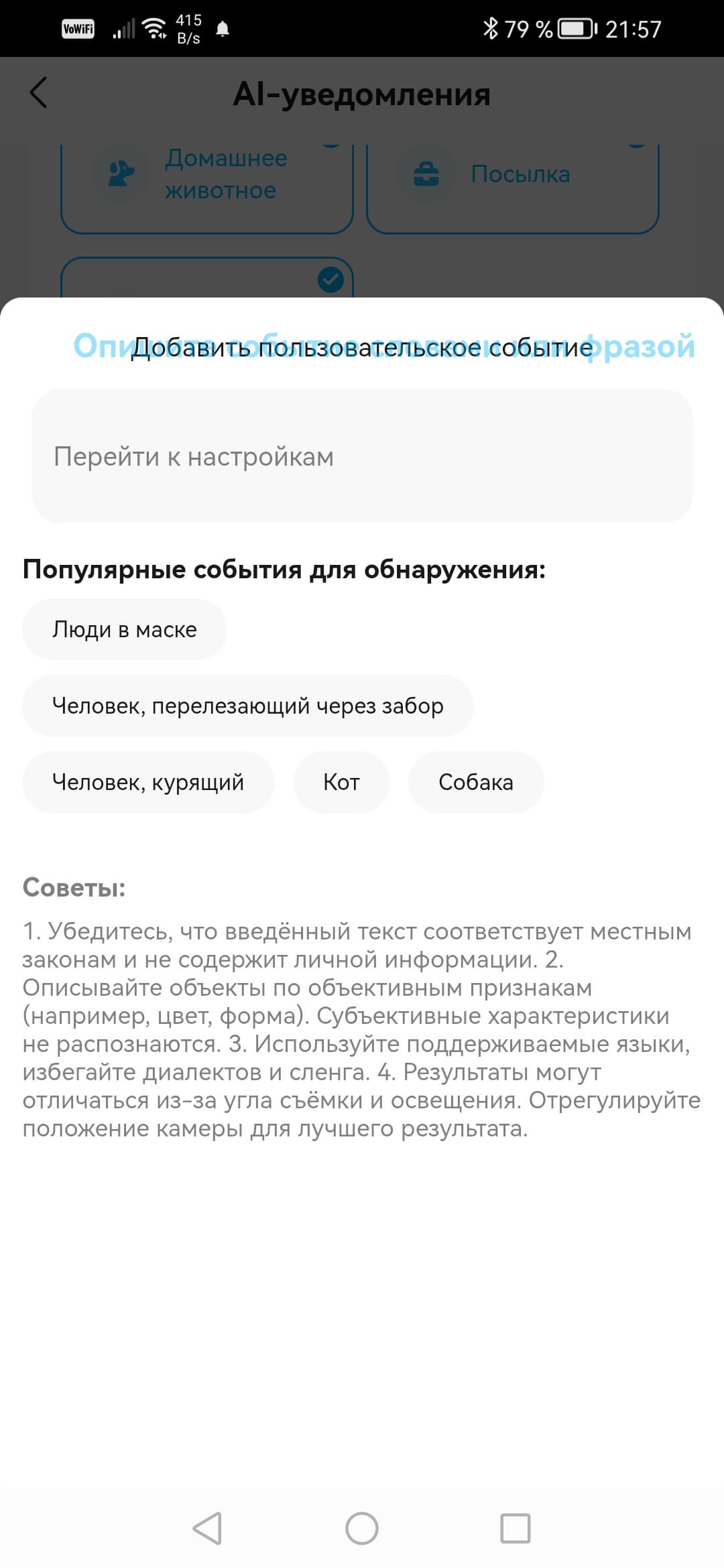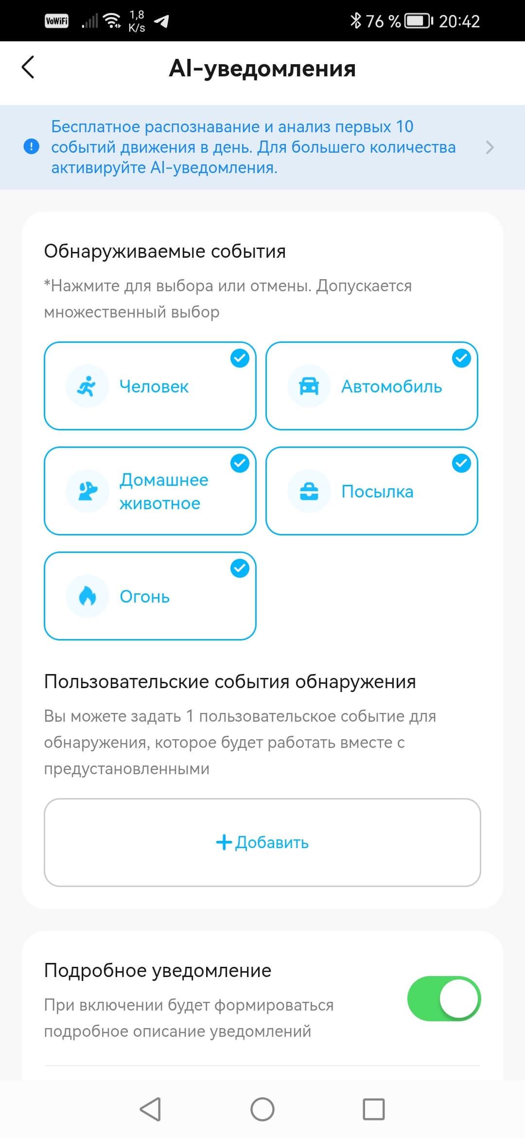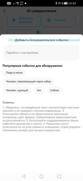 Еще один сюрприз: камеры можно заставить реагировать и на пользовательское событие, которое задаст сам владелец камеры, описав его простыми словами.