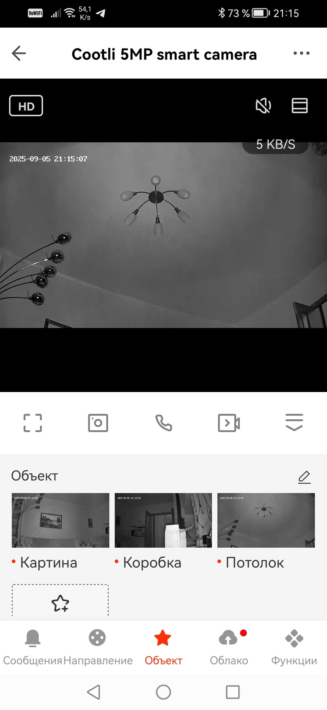 Прочие быстрые настройки камер, открывающиеся под видеоокном, одинаковы. Ну, почти. Поскольку комнатная камера имеет способность запоминать положение объектива. За эту функцию отвечает параметр Объект.