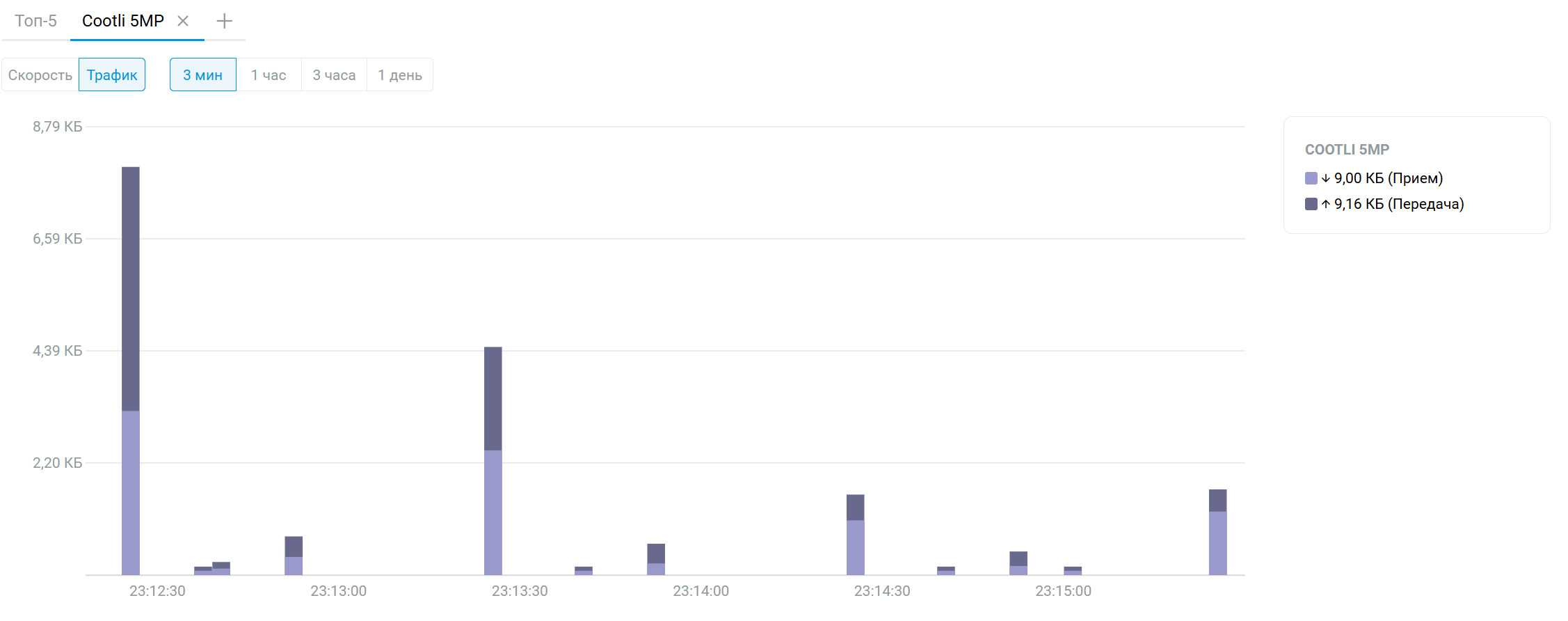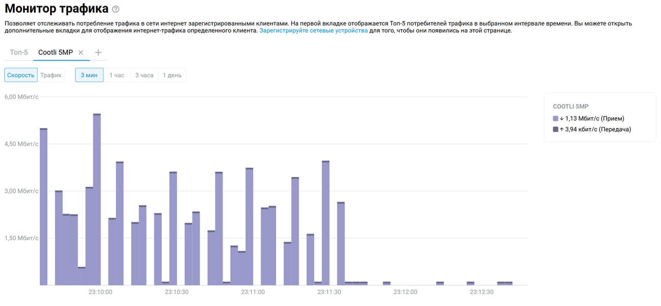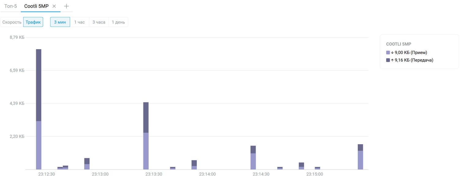 Мы проанализировали трафик камер: они действительно время от времени что-то куда-то отправляют и что-то получают. Иногда отправленный трафик даже равняется полученному.