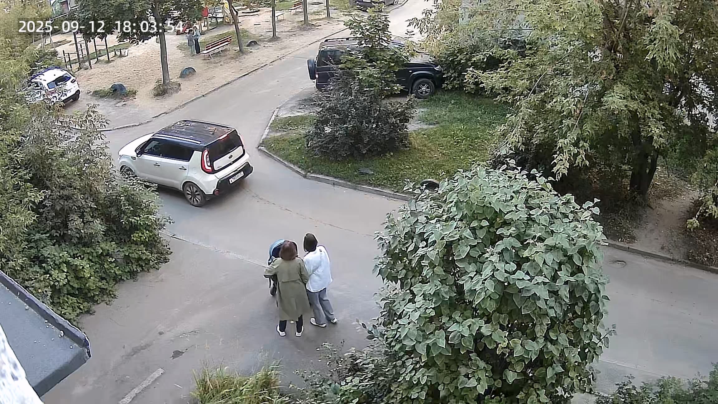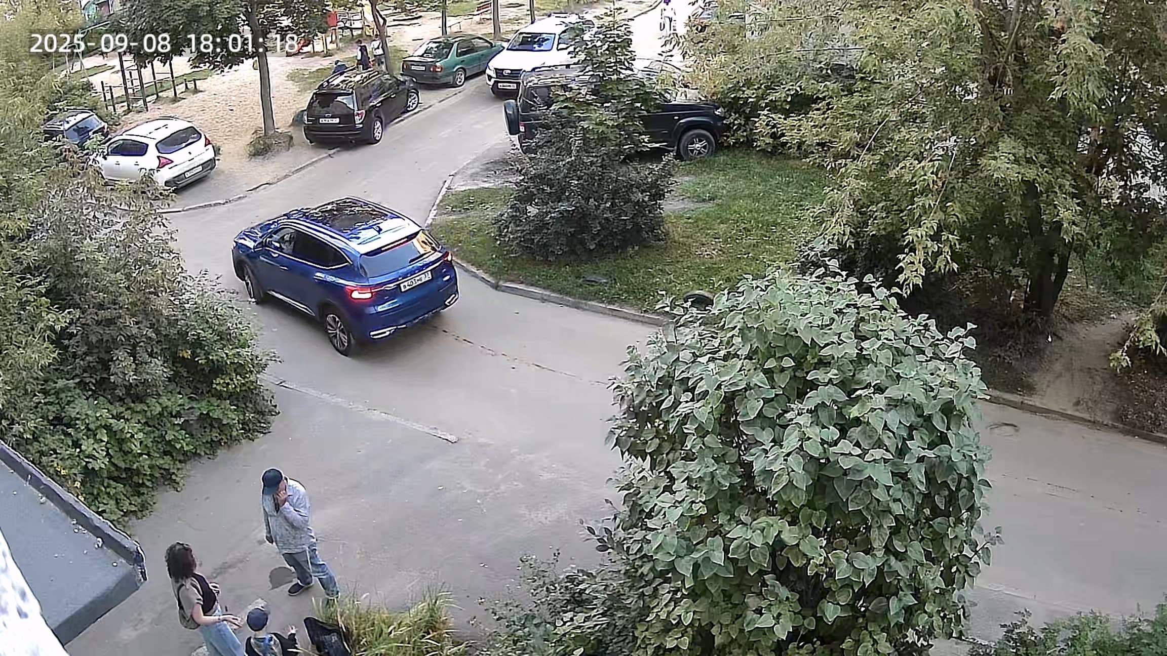 - тут как минимум три машины видно, может, больше где-то прячутся за деревьями.