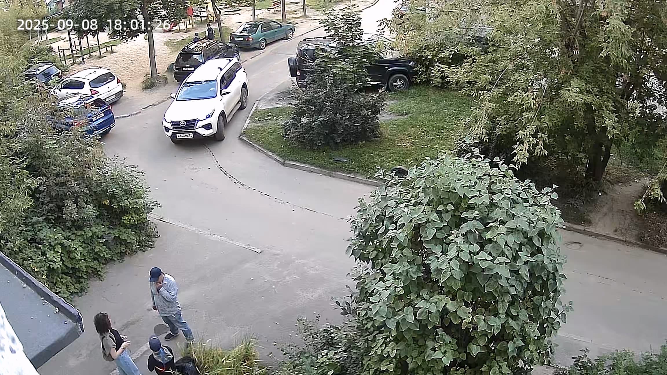 - эх, сколько же тут машин! Белая вон вообще на газон заехала, кошмар!