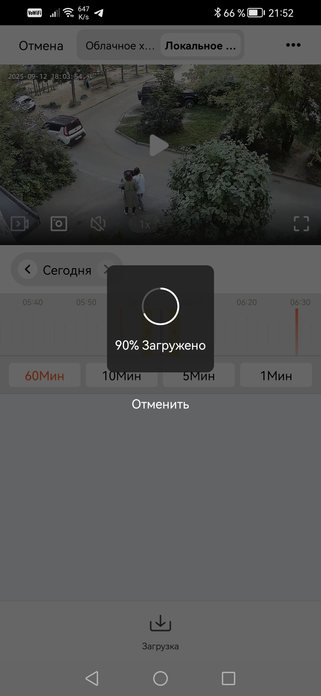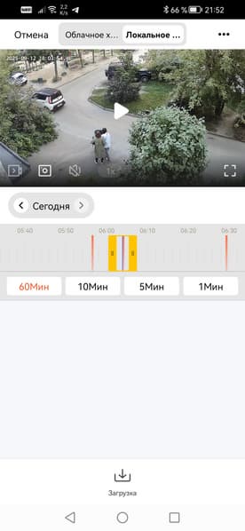 Перейдем к просмотру архива. Он возможен либо через модуль, в котором накапливаются оповещения, либо посредством масштабируемой таймлинии. Кстати, прямо с этой таймлинии можно закачать на смартфон видео любого выбранного периода.