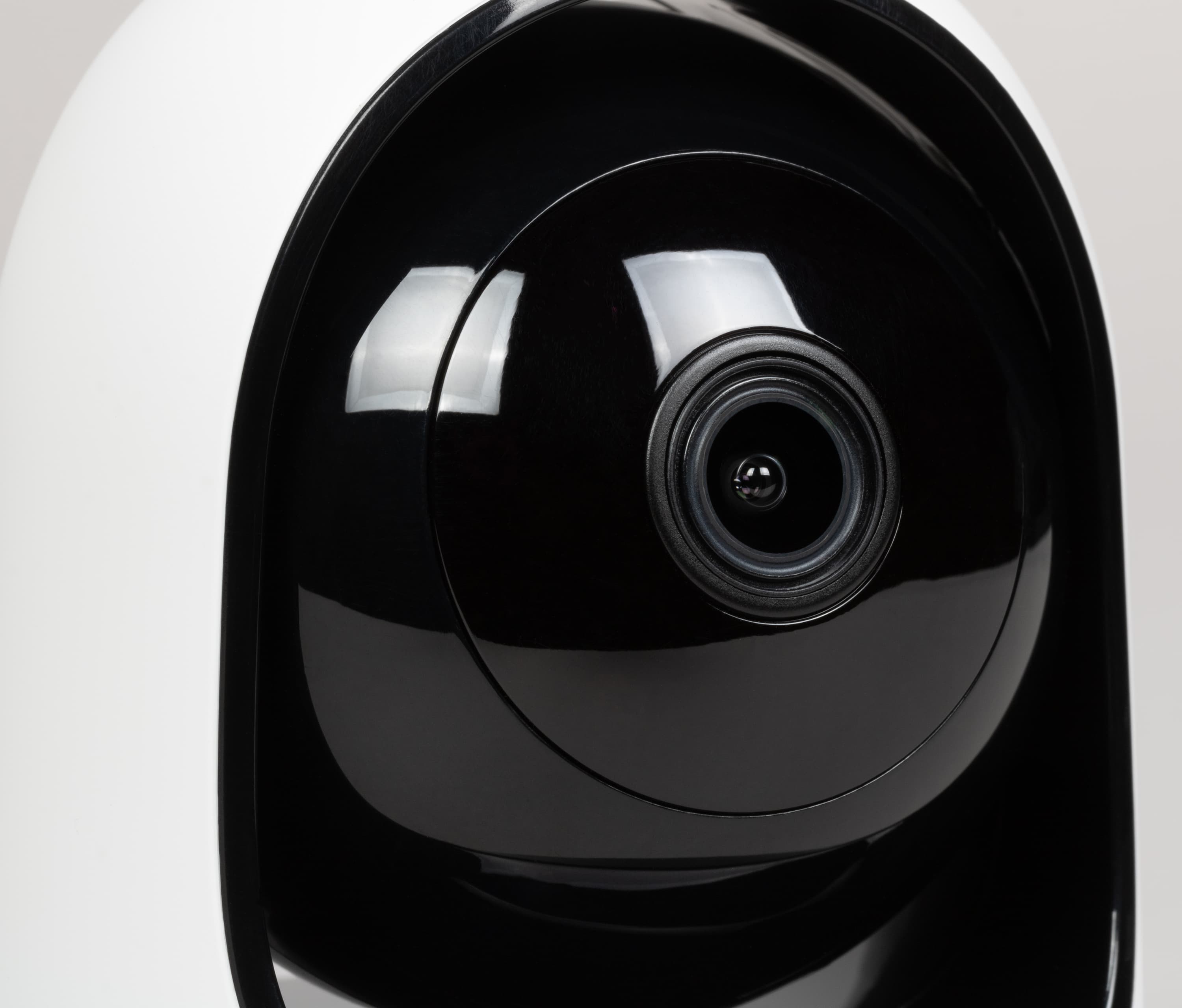 Конструкция камер сильно различается. И правильно, ведь назначение их разное. Комнатное устройство состоит из трех узлов: неподвижная площадка черного цвета, поворотный блок в виде арки, и находящийся внутри нее черный глянцевый качающийся шарик, в котором находится оптико-электронный блок. Уличная камера также состоит из трех частей — неподвижная площадка-опора, поворотный блок и шарообразный оптический блок. Однако, в отличие от комнатной версии, этот шарик качаться не умеет, наклон здесь выставляется вручную.