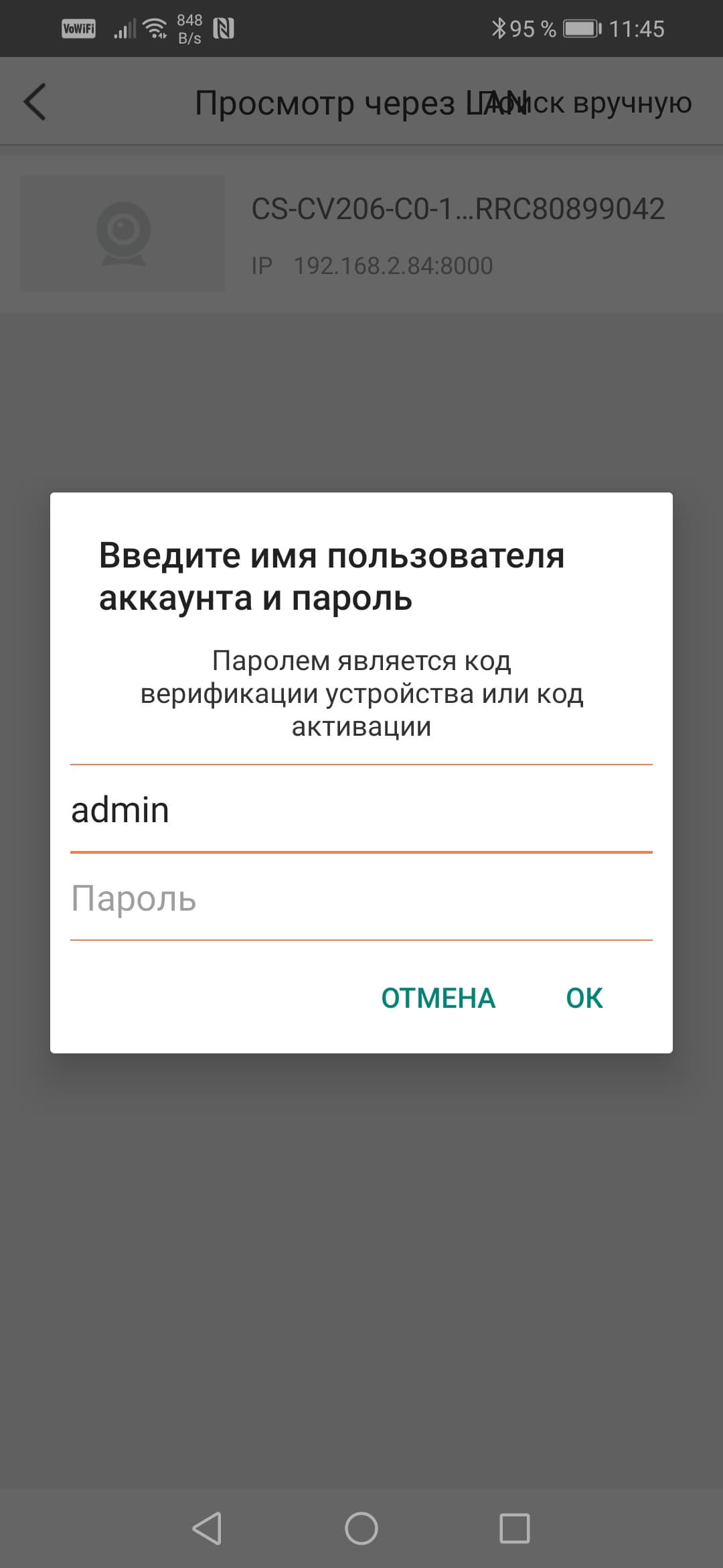 Разработчики Hikvision (ой, простите — конечно же, Ezviz!) предусмотрели ситуацию с отсутствием интернета. В результате эта камера предлагает два способа автономной работы и просмотра видеотрансляции: по локальной сети и даже напрямую, без участия роутера, а через Wi-Fi точку, которая создается самой камерой. Для доступа к камере потребуется ввести код ее верификации. Он напечатан на наклейке рядом с QR-кодом и состоит из заглавных букв латинского алфавита.