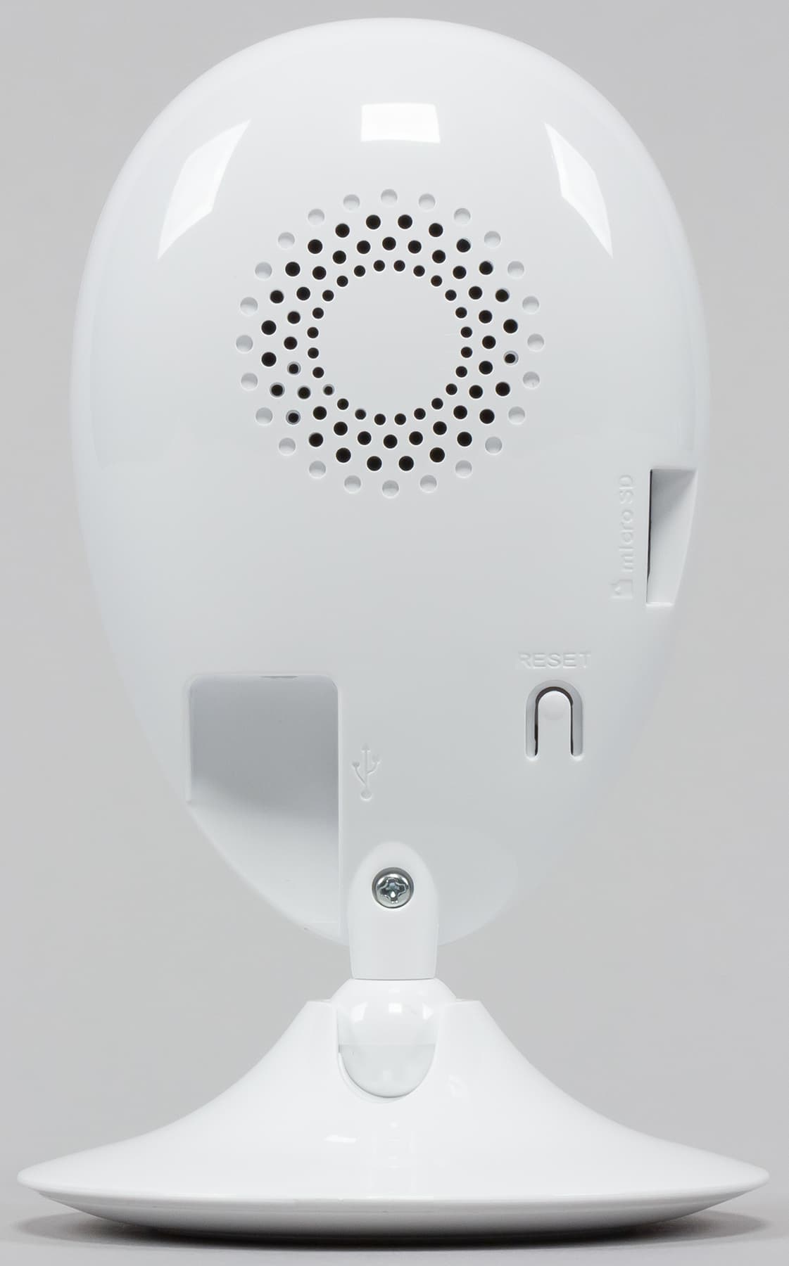Здесь же расположен разъем Micro-USB, подающий камере питание, кнопка сброса/перезагрузки и слот для карты памяти формата microSD/SDHC/SDXC.