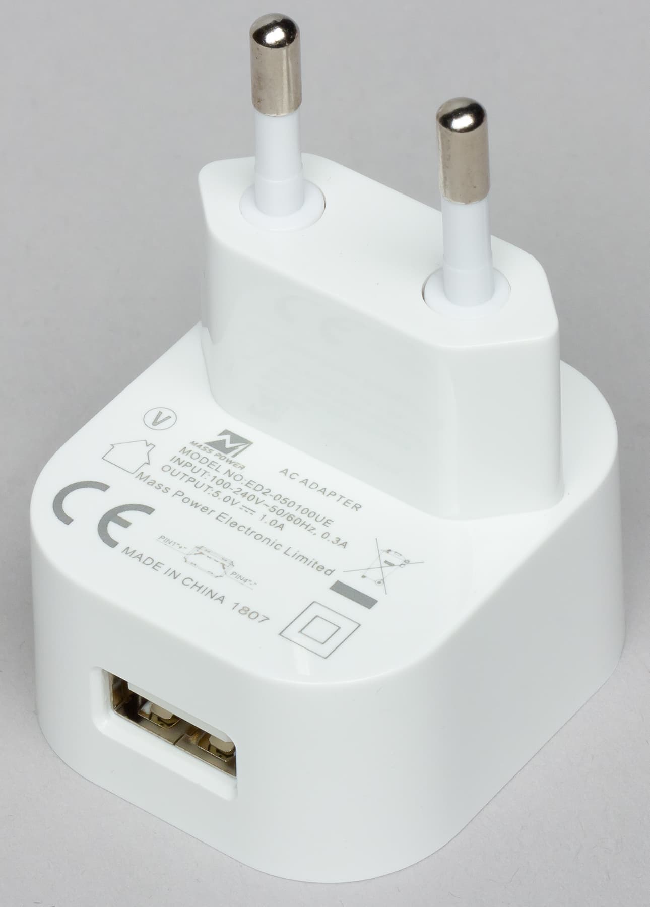 Сетевой адаптер питания дает стандартный для USB ток 5 В 1 А.