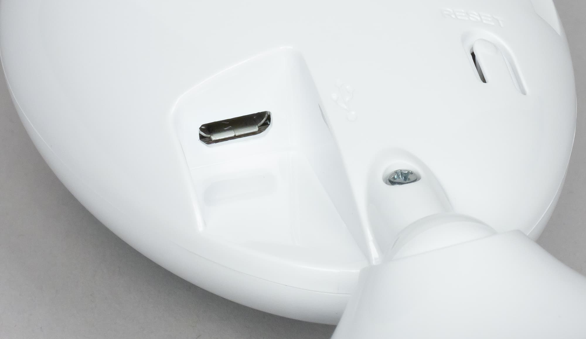 Прилагаемый кабель Micro-USB глубоко утоплен в гнезде, так, что провод не мешает при повороте и наклоне камеры.