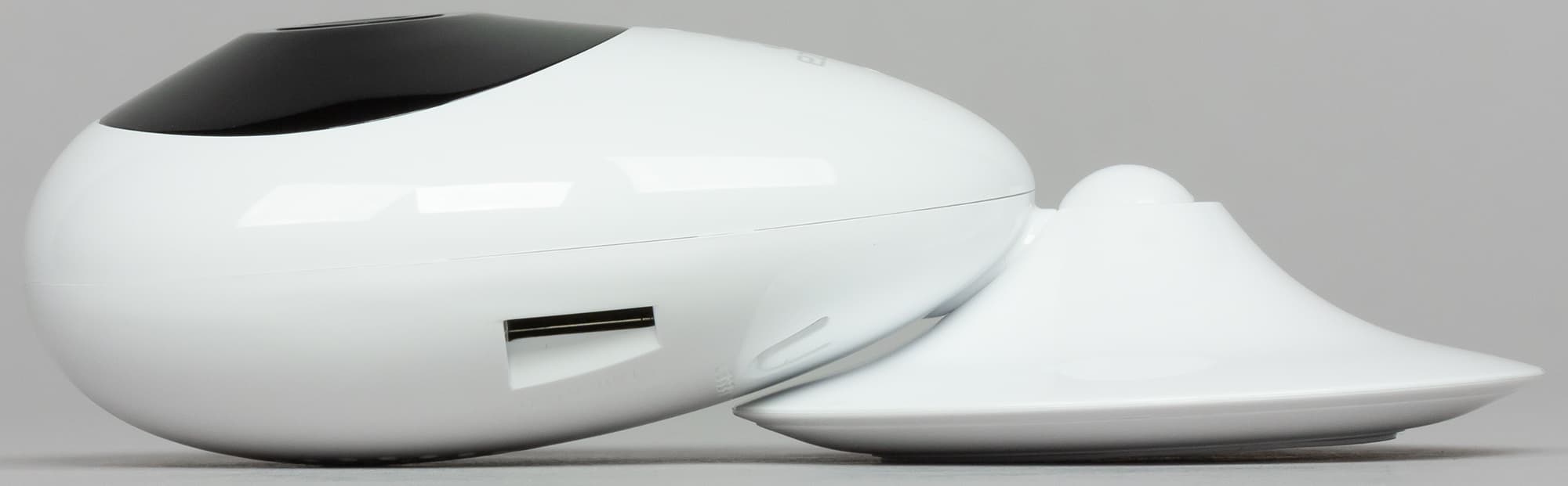 В днище опорной площадки приклеено резиновое кольцо, затрудняющее скольжение камеры на гладких поверхностях. Под пластиком днища скрывается магнитная основа, благодаря ей камеру можно прикрепить к любой металлической поверхности. Этой же цели служит прилагаемый металлический кругляш, привинчиваемый к стене или потолку саморезами.
