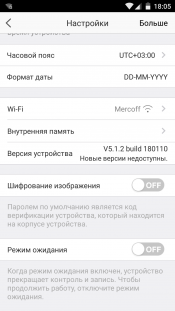 Столь же малое количество настроек присутствует и в мобильном приложении Ezviz. Здесь разрешается включить/отключить звук и цветной светодиодный индикатор, сигнализирующий о текущем режиме работы аппарата. Переключатель «Ночной режим» отвечает за активацию инфракрасной подсветки при недостатке освещенности (далее мы увидим, что эта подсветка в большинстве случаев оказывается ненужной в силу высокой чувствительности CMOS датчика камеры). Также в настройках можно изменить часовой пояс и формат отображения даты, просмотреть состояние карты памяти и активировать/деактивировать упоминавшуюся защиту архива от несанкционированного просмотра.