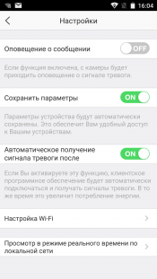 Настроек камеры в обоих приложениях — мобильном и для ПК — практически нет. Все, что доступно пользователю — это включить или отключить аудиовизуальные сообщения о движении в кадре, настроить расписание поступления таких оповещений, увидеть текущее состояние накопителя (карты памяти), а также активировать/деактивировать защиту видеозаписей архива.