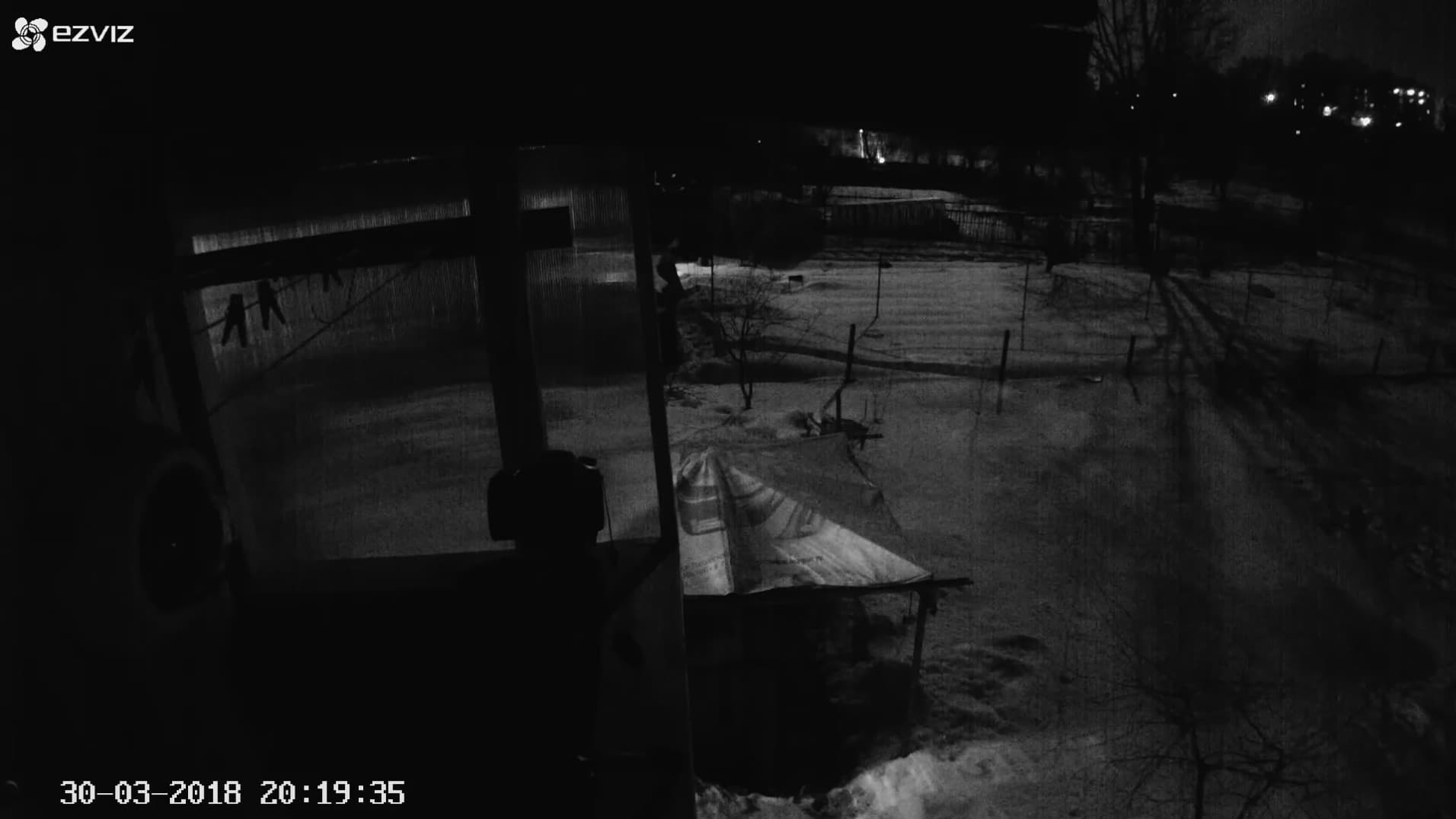Ну что тут поделаешь? Фонари эти никак не выключить, а значит — придется переезжать вместе с камерой в более темное место. Здесь уже не имеется никаких уличных фонарей и ночью камере наверняка не хватит света, чтобы оставаться в дневном режиме. Так и произошло: при наступлении сумерек, когда по сути единственным источником света стала неполная Луна, спрятанная за облаками, аппарат переключился в нужный ночной режим с черно-белой картинкой. Однако и здесь нас поджидал сюрприз. Похоже, что переключатель, которым активируется либо деактивируется возможность перехода камеры из режима День в режим Ночь, на самом деле всего лишь включает/выключает питание инфракрасной подсветки, но никак не влияет на собственно переход камеры из режима в режим.